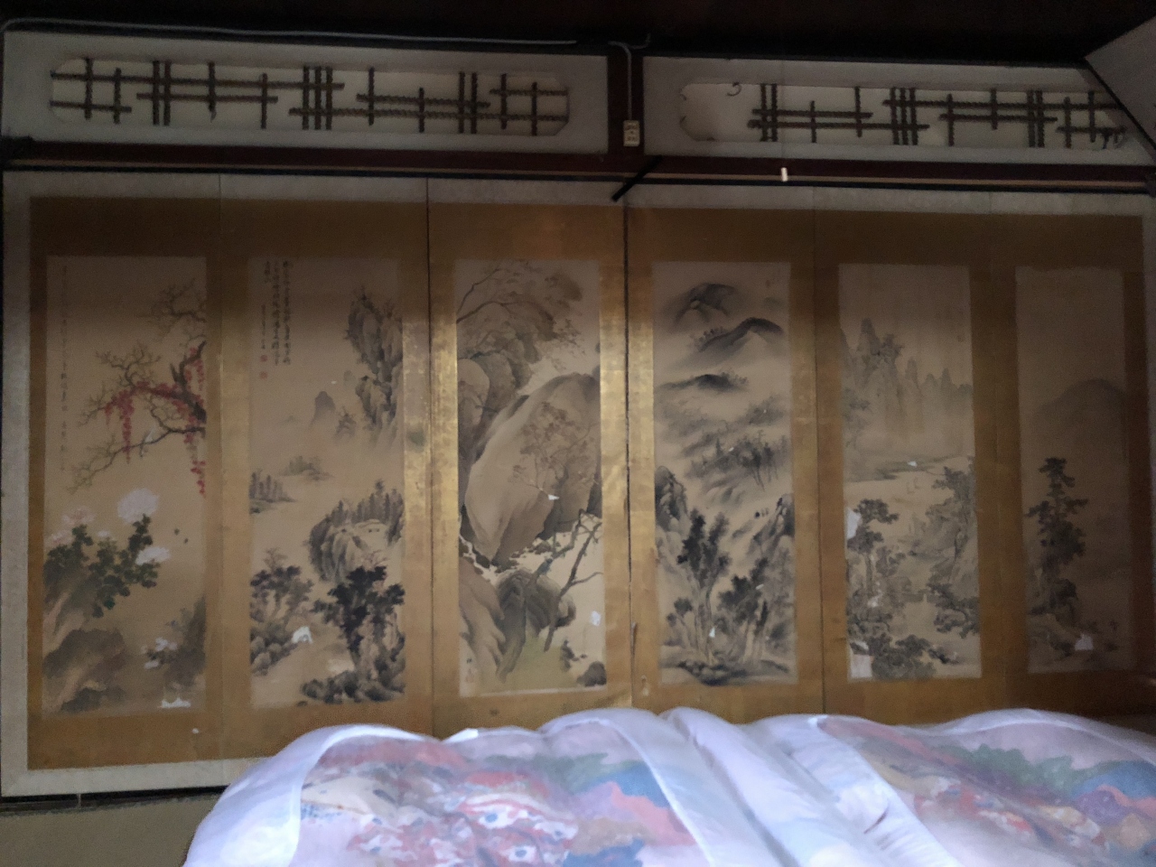 両津のバス道に面した旅館で、裏は加茂湖ですが、部屋から見えないのが残念です。高浜虚子の掛け軸はじめ、よく知らないがお宝満載の感のある古い旅館。部屋のふすまや調度品も年代物のまるで博物館のような旅館。外国人旅行者が目立ちました。風呂はバスクリン湯です。