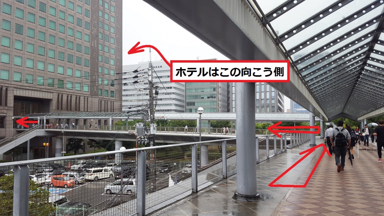 【アクセス】新大阪駅から徒歩5分、とは書かれているが、雨天でもほぼ屋根のある状態でホテルの近くまでアクセスできる。新幹線中央口を出て右方向に進み、地下鉄の乗り換え方向に向かい、(出口1を経由して)出口4から駅の外に出て、右手エスカレータをあがり、御堂筋線に沿うような立体の歩道を進む。歩道橋からつながっているニッセイビルの2階に入り、エスカレータで地上に降りると、十字路の斜め向かいがメルパルク。(ニッセイビルがしまっていても、すぐ手前に階段がある)