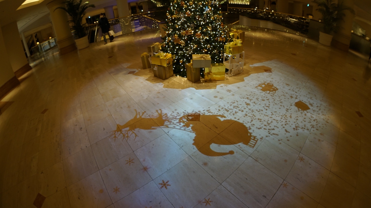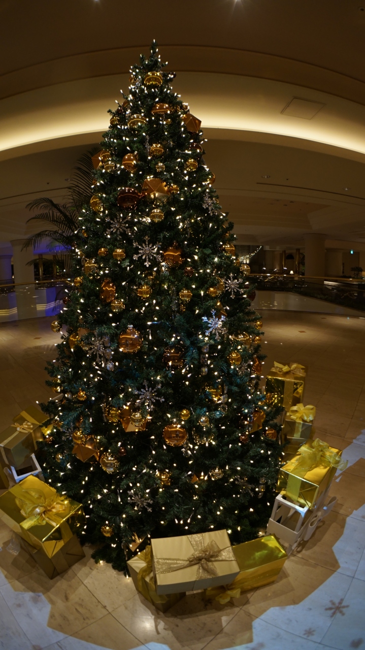 クリスマスのシーズンに行ったのでホテルの中には大きなタワーが私をお出迎えしてくれました。ツリー以外にもパン屋さんなどのあちこちで飾り付けがされていました。
