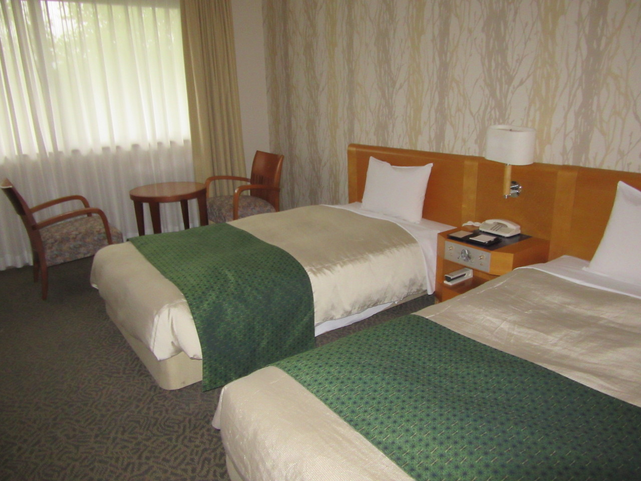お部屋はツインベットの洋室。空の冷蔵庫、ポット、タオル大中、浴衣、歯ブラシ、ドライヤーなど揃っていて快適に過ごせました。