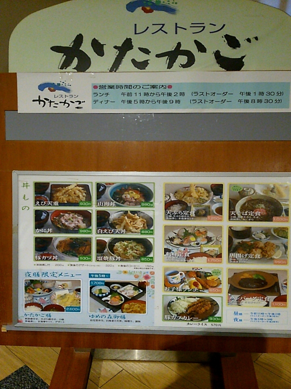 日帰り温泉で行きました。露天風呂は広くはないですが気持ち良いです。サウナもあり、地元の人で一杯です。また風呂上がりにレストランかたかごで夕食を食べました。天ぷらそばの冷たいほうを選択。ボリュームがあり、食べきれないほどでした。