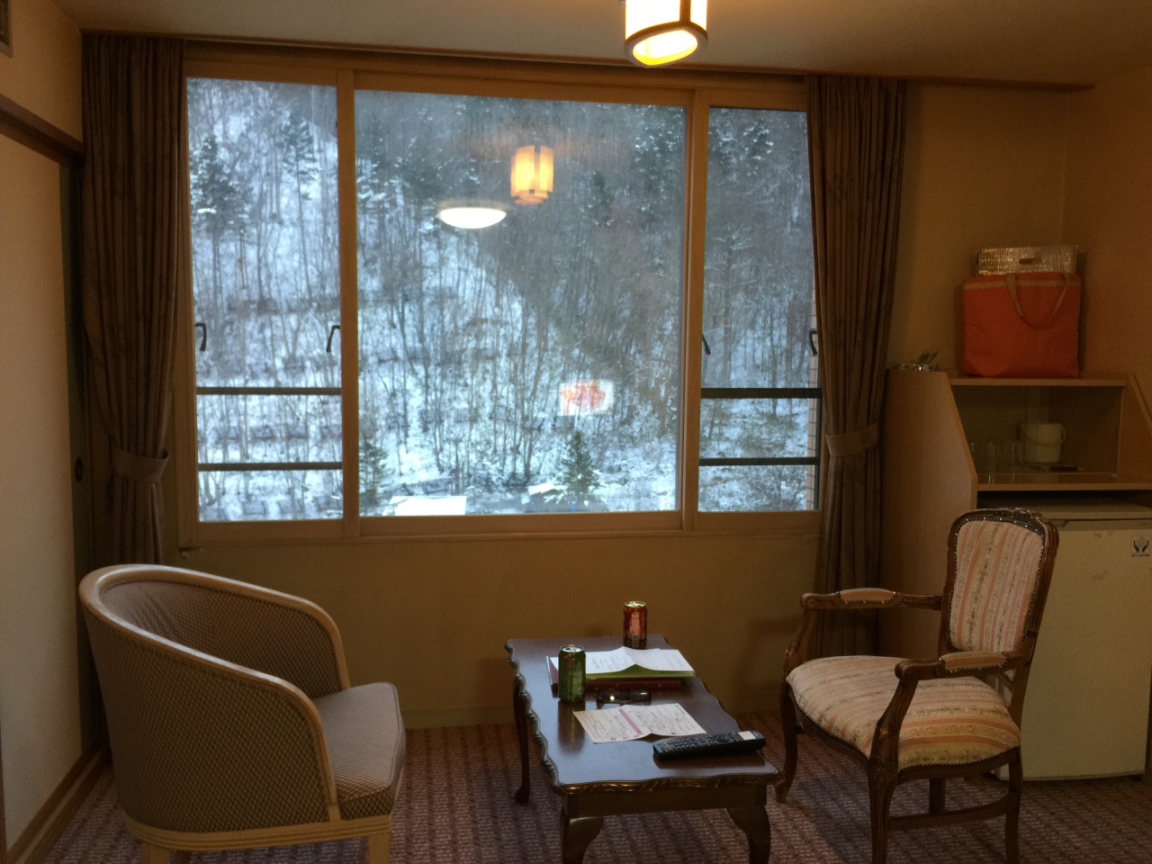 1階外には足湯があります。雪景色を見ながらの足湯は最高でした。