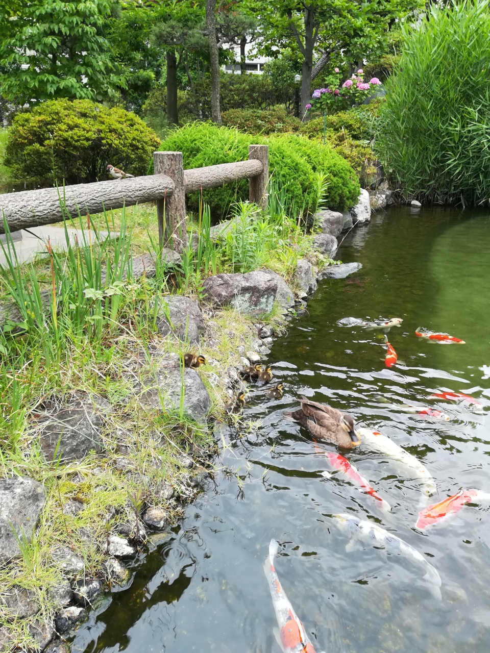 公式ホームページを見ていなかったので、中庭に池がることや、かるがもがいる事も全くしらないで行きました。