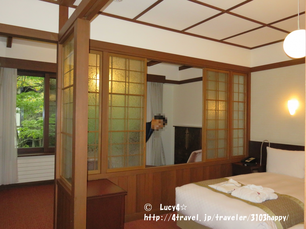 外観はまさに、避暑地のホテル♪ ロビーからクラッシック感が一杯で、見事なジャパニーズ・ステンドグラスを横目に、スタッフが部屋へ案内してくれた。
