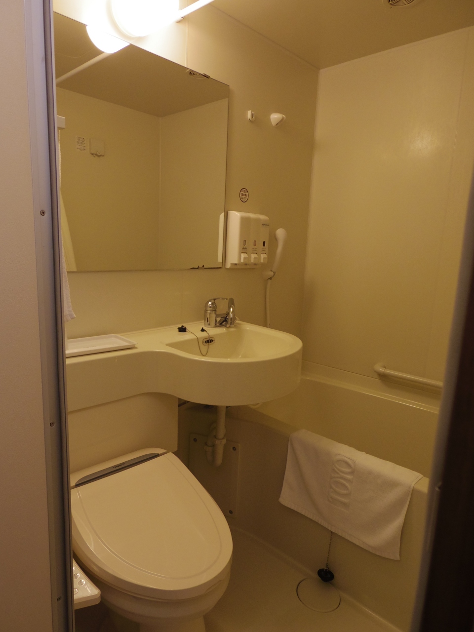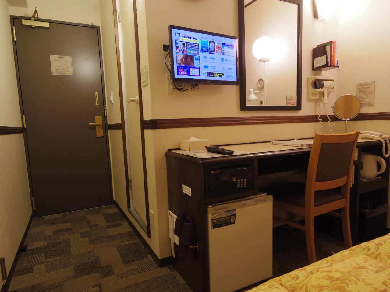 客室は、ベッドとユニットバス、テレビなどが置かれた机、小型冷蔵庫と東横インの典型的なつくりでしたが、清潔感もあり、快適に休むことができました。