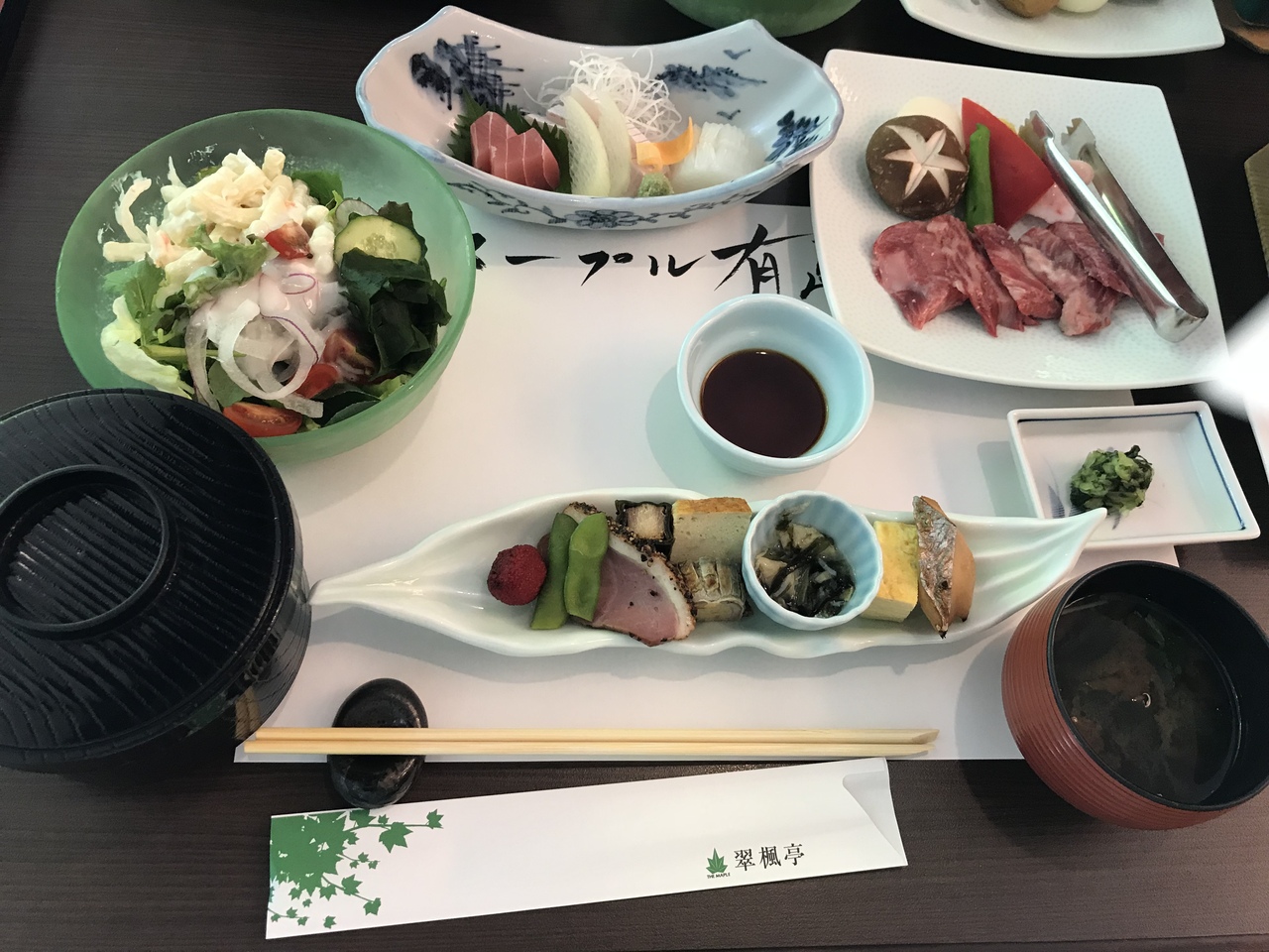 11時30分から1階にある翠楓亭でステーキ膳を頂きました。