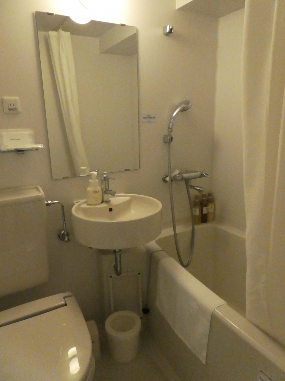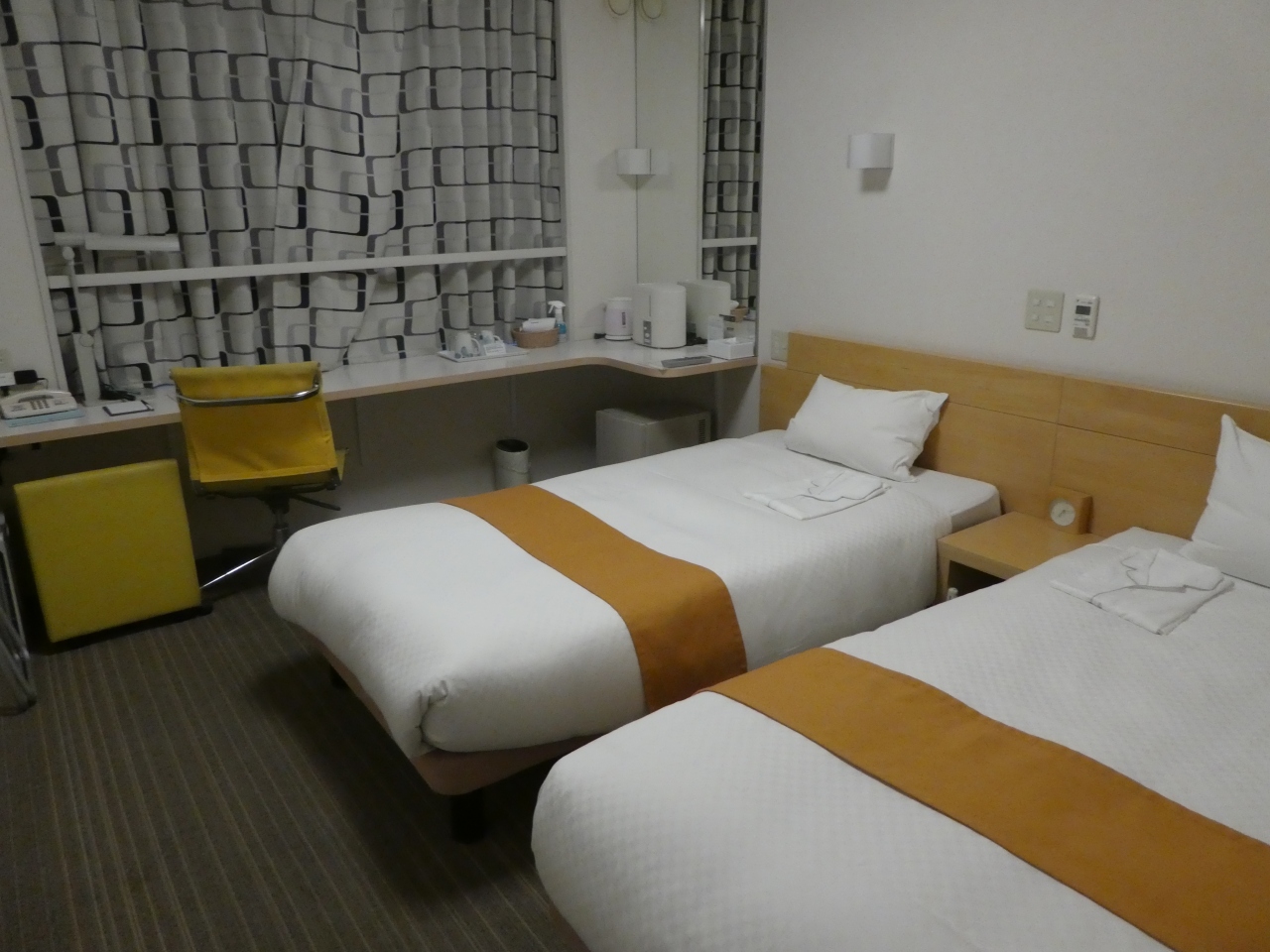 市電の勝山町駅のそばにあるビジネスホテル。ツインをシングルユースで利用しました。ロケーションは、繁華街の大街道から1駅離れているのが少し不便ですが、歩いて歩けない距離ではありません。部屋はごく普通で、特に不満はありません。宿泊に必要なものは一式揃っています。朝食ではジャコ天もありました。