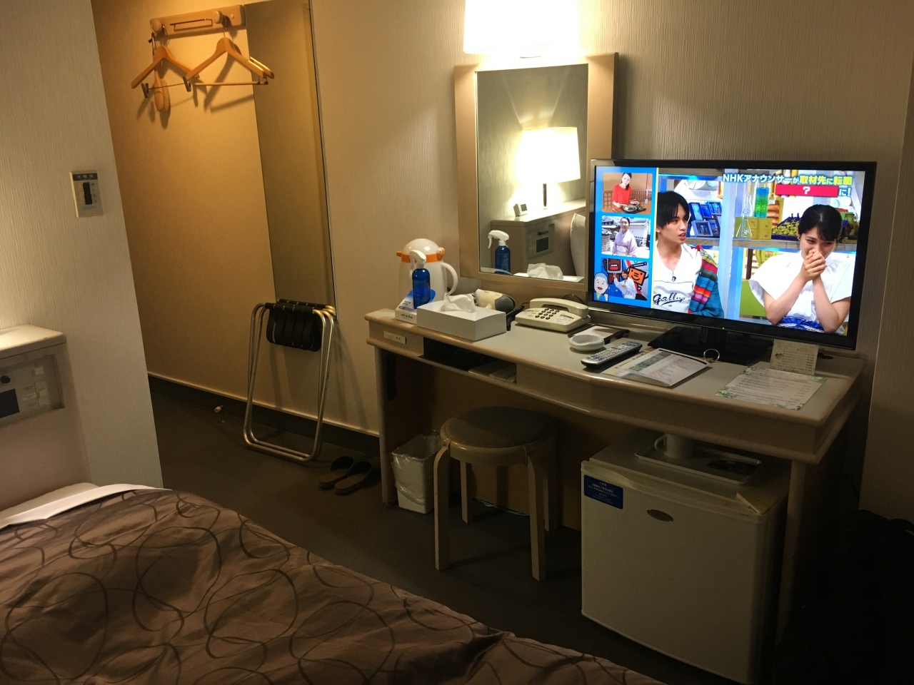 札幌に出張があり、ここで1泊しました。部屋はちょっと狭いですが、1人だと十分です。すすきのと大通も歩ける距離です。1泊の料金は7000円と部屋の状態だけを見たら割高ですが、バイキングの朝食が無料で付いているので、妥当だと思います。