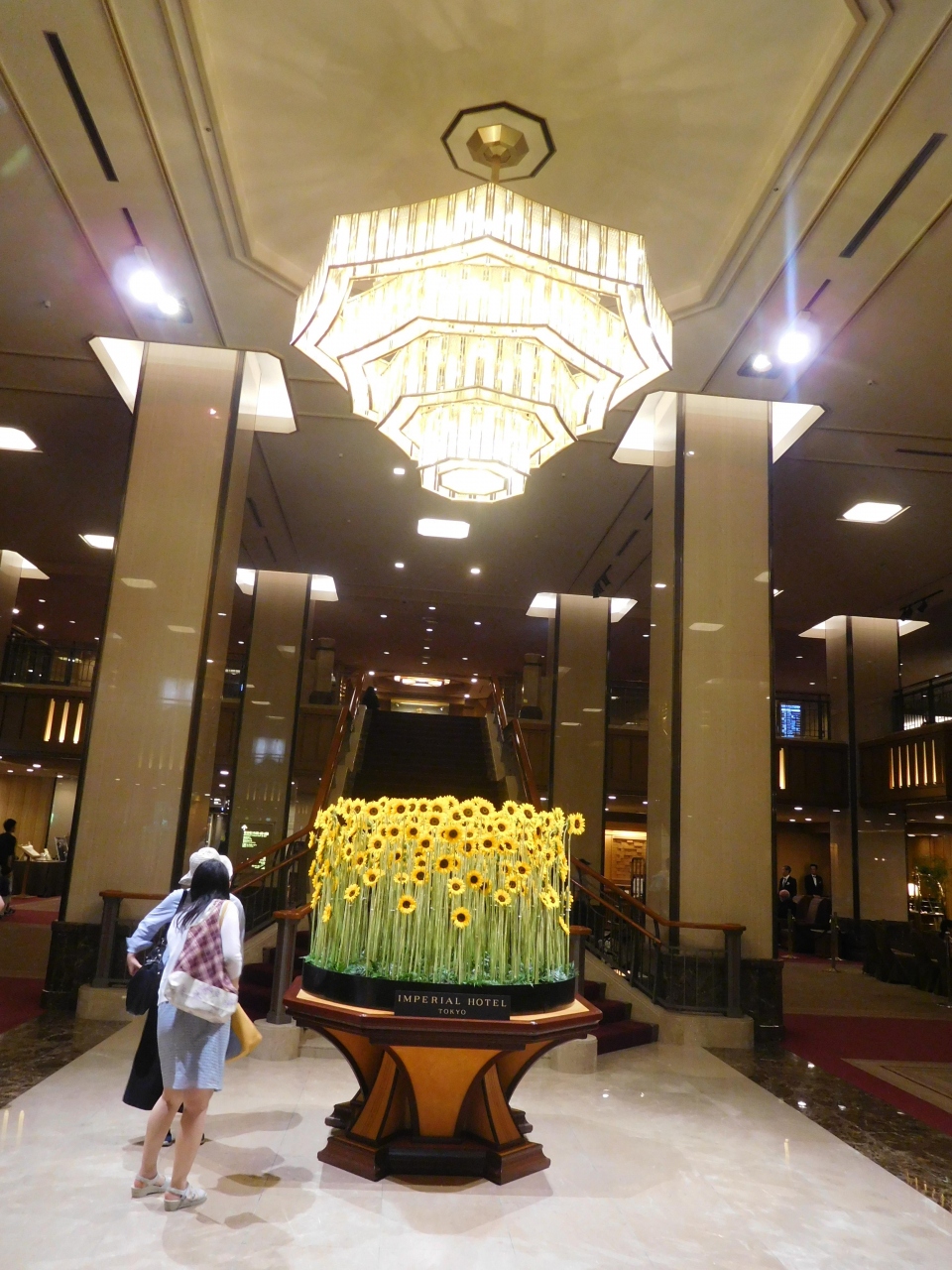 帝国ホテルでの親族の結婚式に出席しました。その少し前に、テレビで帝国ホテルの紹介をする番組があり、どんなに細かなところまで気配りをしているか幾つも例を挙げていました。その一例は、ロビーの生花は一輪たりとも傷んだものがないようにしているとありましたが、確かにその通りでした。結婚式の食事もとてもおいしかったです。
