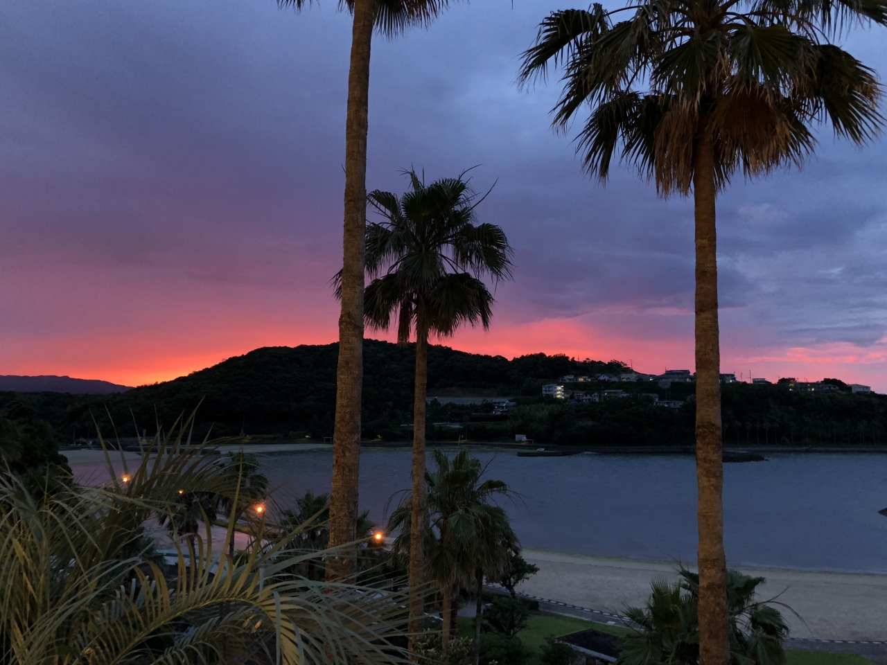 毎年1度、御墓参りで訪れる際に宿泊します。今回は台風直撃前夜で、夕焼けが素晴らしかったです。