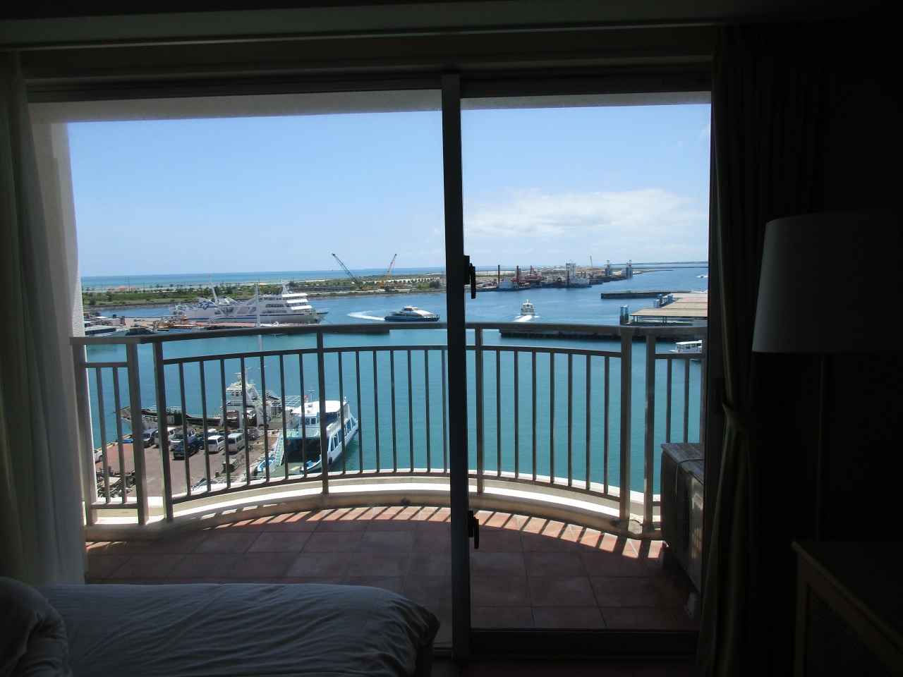 部屋は古さが目立つが、ベランダがあり目の前の港が見えるのは気持ちが良い。