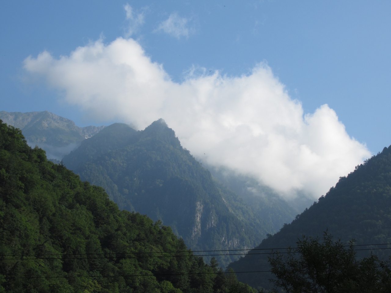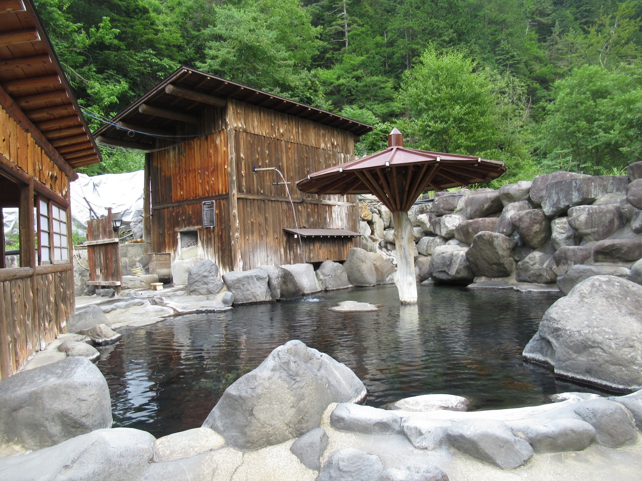 新穂高ロープウェイの少し手前に在って、槍ヶ岳を見渡せる渓流混浴露天風呂が名物。