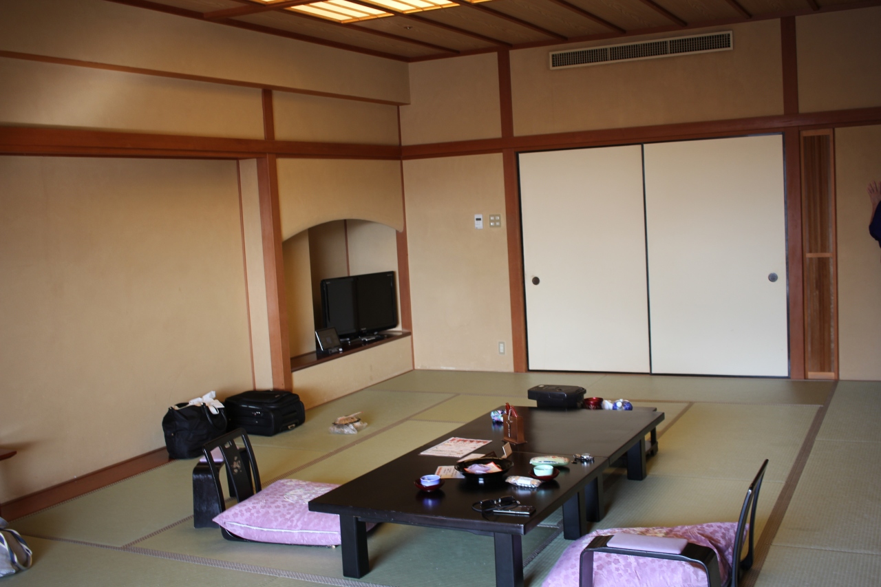 - 16畳くらいの広い和室と4畳くらいのテーブル椅子、眺望は今一つ。