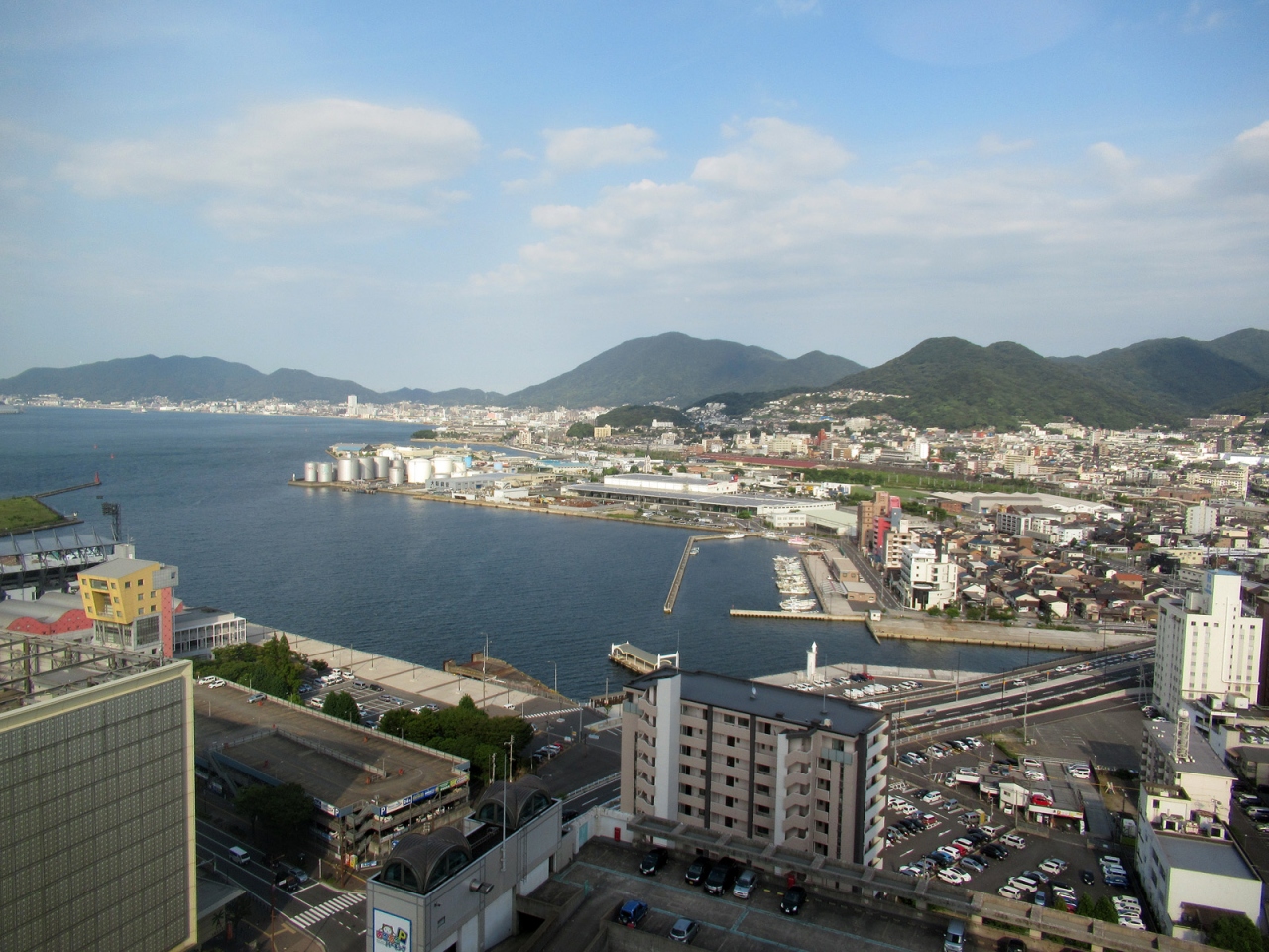 小倉駅新幹線口から空中回廊でホテル2階(フロントは1階)につながっていますので雨の日でも濡れませんし、途中には松本零士氏の漫画の登場人物が迎えてくれたりします。今年開業25周年というホテルですからデザインは今風ではないものの、館内はどこも広々、施設も豪華な造りで、さすがの高級ホテルです。接客もとても丁寧ですが、客室へのエスコートなどはありません。アサインされたのは21階(スーペリアフロアの下層階)にあるツインルームで30平米。こちらも決して今風デザインではありませんが綺麗にしてありますし、大きなシーリングライトの付いた明るい客室は日本人好みだと思います。客室の向きは東側でしたが、大きめの窓からは手前に北九州港、遠くに関門海峡が眺められのも気持ちの良いものでした。石材を用いたバスルームも高級感があり、バスアメニティもボディタオルなど充分なものでした。ただ無料のコーヒーとボトルウォーターの1本、使い捨てスリッパは欲しいと思いましたが、上級フロアでは用意されているのでしょうか?朝食ブッフェには焼きカレーや明太子など北九州を感じさせるメニューもありましたが、何か華やかさに欠けていたと思いましたし、「あぁ、美味しい」と思うものもなかったと感じました。