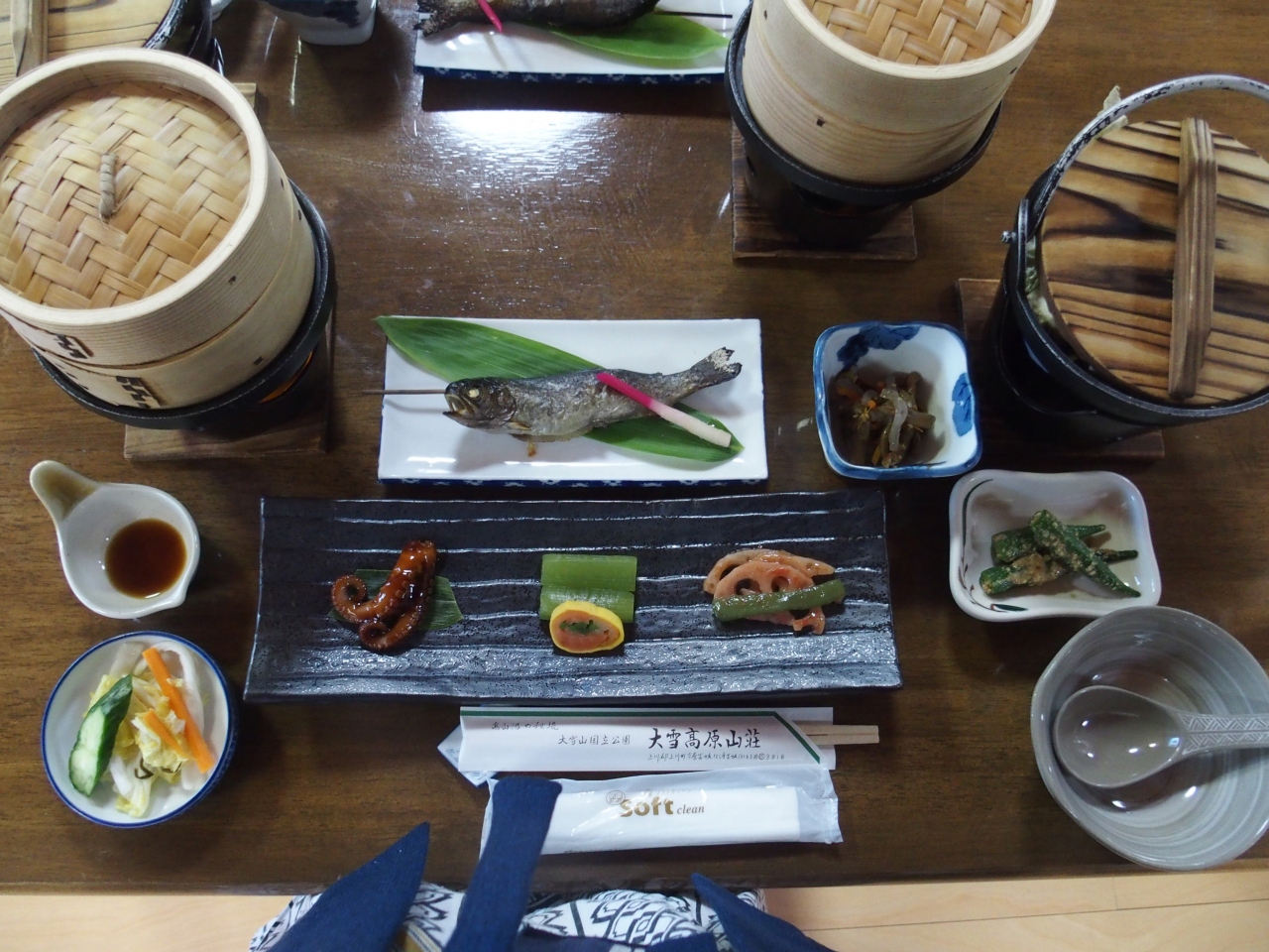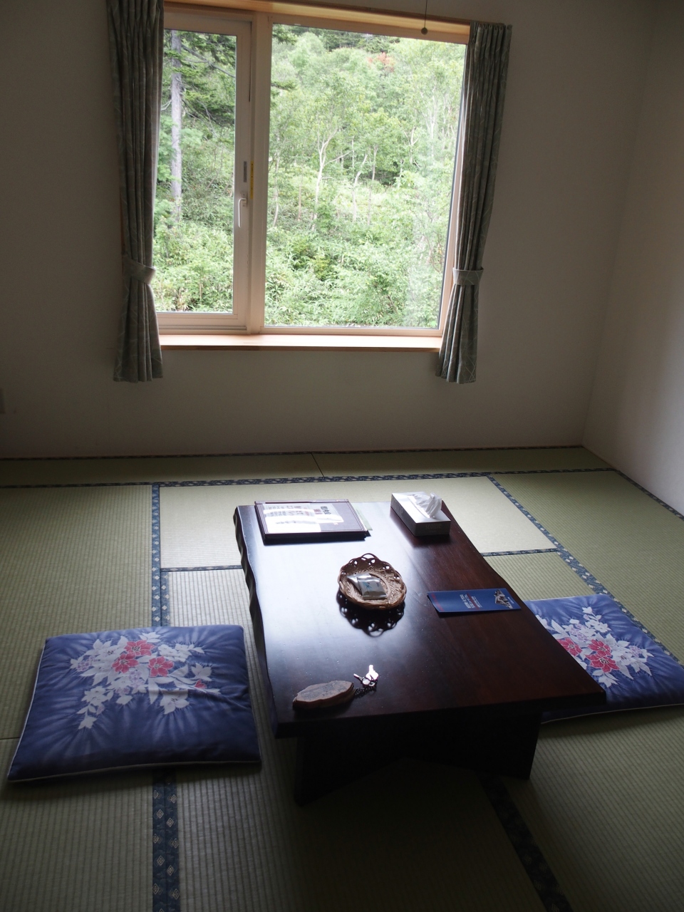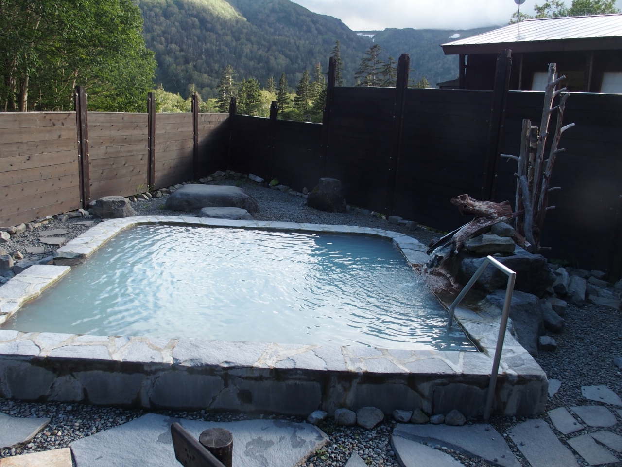 層雲峡から国道と砂利道のラフな林道を車で30分。標高1200メートルの別天地。施設は山小屋とそれほど変わらず、通信不可、部屋にはテレビもトイレもありませんが、とても静かで、空気もきれい、夏でも上着が必要なほど。泊まったのは8月の中旬でしたが、こんな寒い夏は初めてと宿のご主人がいうほど寒く、ストーブをたいていました。宿の中はとても清潔感があり、館内はスリッパがなく備えつけのたびをはいて移動します。10時半ころに到着し、すぐ高原沼めぐりに。15:00には帰ってこないとならないので、緑沼までいって引き返してきました。緑沼は、とても美しく、大雪の山々を望むことができる絶好のスポット。手頃な休憩スペースがあり、ランチをとりました。下山後は、宿の近くの小高い展望台に上り、大雪の山々を眺望。温泉は、露天風呂もついていましたが、たまたま前日の雨のため温泉に冷水が混じってしまい露天の温度は30度、内風呂は36度と少しぬるめでした。翌日もう一度はいった時は、40度まで回復していました。夕食は、カモ鍋がメインでしたが、一品一品丁寧に手づくりされた食事は見た目も美しくどれも秀逸です。日本秘湯の会経由で予約したので、生ビールのサービスがつきました。朝は和食バイキングでした。宿の人たちは皆ホスピタリティーのあふれ、とても感じがよく気持ちよく過ごせました。すべてにおいて100点満点の宿です。