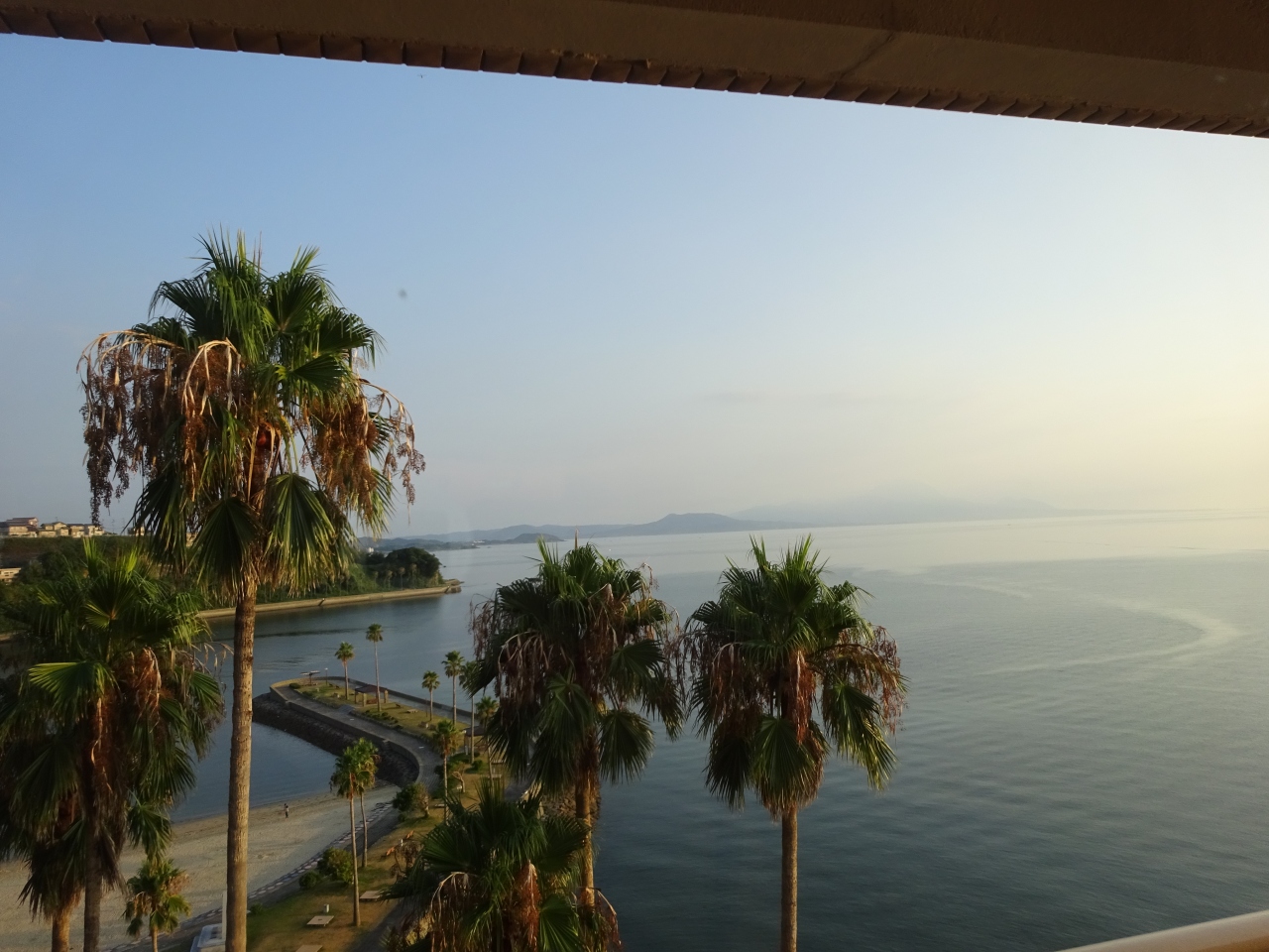 せりでた丘の上に建てられているため、どこからでもオーシャンビュー!まさにリゾート!併設された温泉施設からも有明海を一望できる絶景を楽しむことができました。