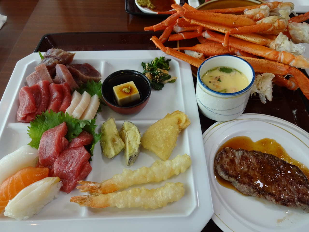 品数豊富で、刺身・天ぷら・ステーキ・カニのバイキング四天王が勢ぞろい、スイーツもなかなかいけるこのバイキングは好きです。
