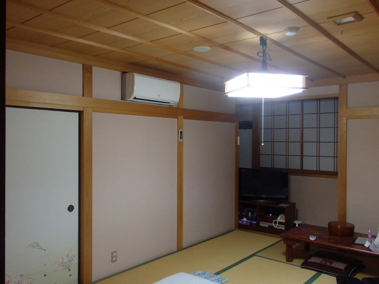 玄関入ってすぐのフロントでチェックインして、5階の客室に行きました。和室で10畳ほどの広さで、すでに布団が敷いてありました。狭いですがトイレもついていました。客室に来ている水道の水は飲んでも大丈夫と示されてました。