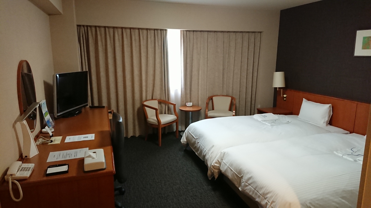 部屋はビジネスホテルとしてはそもそも広く、使い勝手もよく、ゆったりできます。