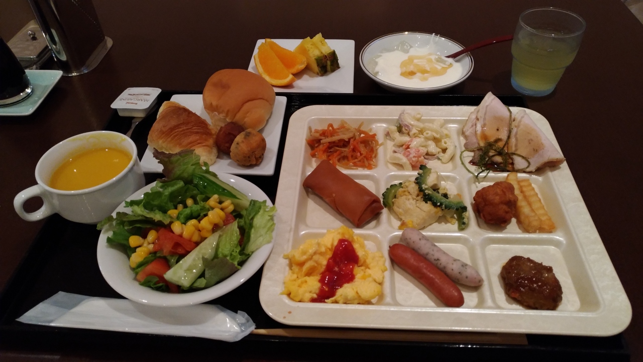 朝食はビュッフェ形式です。高級ホテルとは比較できませんが、このクラスのホテルとしては種類は多く、味の方もまずまずで、お腹いっぱい食べられました。