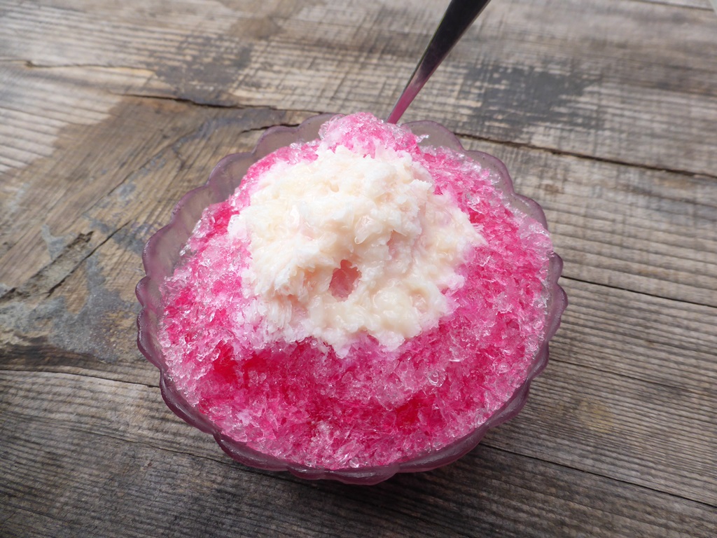 上日川峠の登山口そばにあるロッヂです。屋根付きのベンチがあり、朝はここをお借りして準備しました。帰りにはバスの時間まで休憩し、かき氷(いちごミルク)を注文。今はやりのフワフワなものではなく、氷をクラッシュしたタイプです。口の中がつめたくなり続けて食べられませんが、一息つけました。専門店のようなクオリティはありませんが、場所を考えれば十分でしょう。他にも冷えた桃などメニューも豊富で、待ち時間の休憩にはちょうどいいロッヂです。
