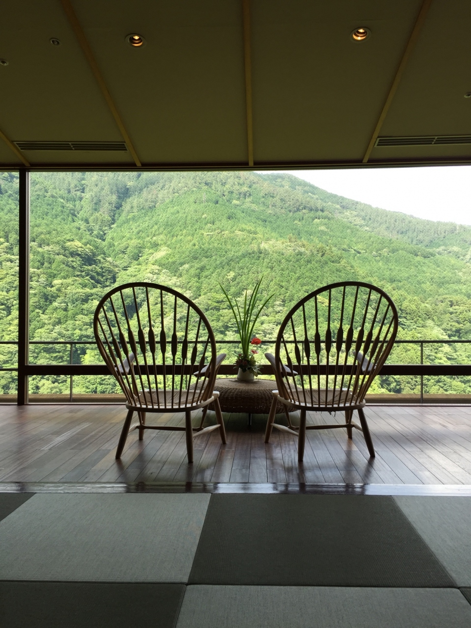 家族旅行で訪れました。今回は一回のお部屋で広いテラスのある露天風呂でした。写真のような揺れるカゴ型の椅子やソファがあり、湯上り後にリラックスできます。大浴場の露天もインフィニティプールのようで絶景です。今回2回目の利用でしたが残念ながらお食事は1回目の時のような感動はなかったです。お風呂と景色は最高ですがお食事は普通です。