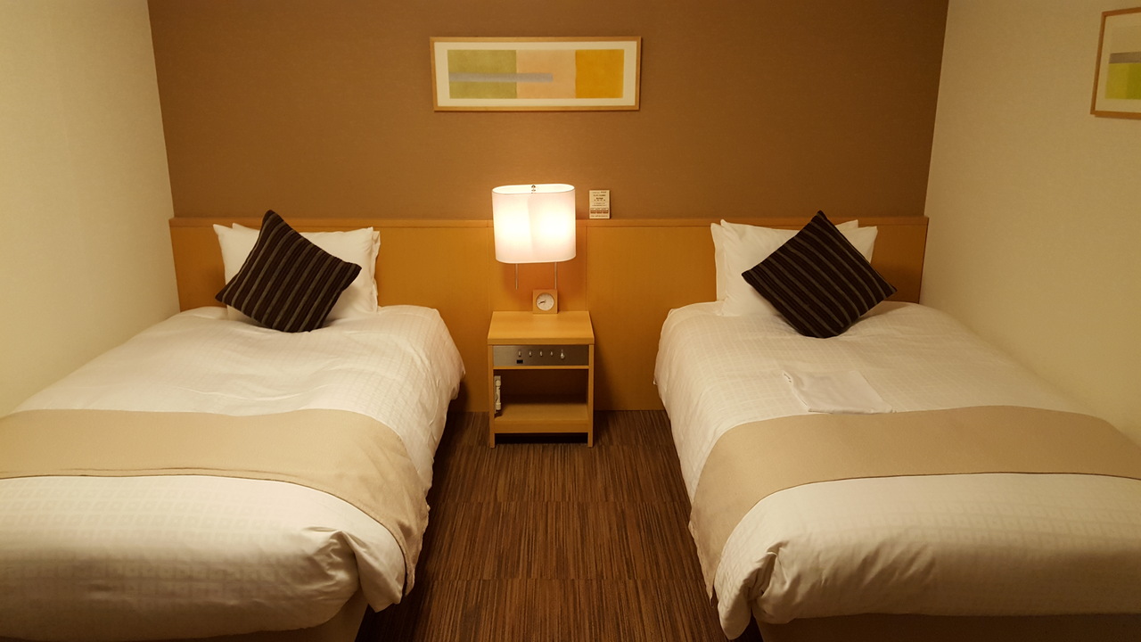 秋田出張で使いました。なんと自分一人だけ部屋をアップグレードしていただき、一人でツインの部屋に泊まります。部屋は広いし奇麗。浴室も広いです。驚いたことに、貸しスマホがデフォで用意されています。チェックアウト時にデータは自動的に削除されるとかで、安心です。