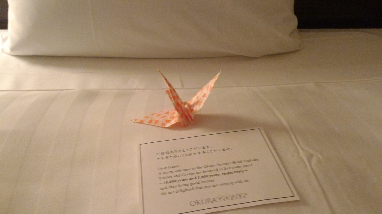 ベッドに折り鶴と亀がおいてあり、癒されました。朝方早く宿を出た際には、丁寧に対応されて感じもよかったです。ただ、部屋に忘れ物をしたため、電話連絡を入れたところ、ちょっと対応に誠実さが欠けているような印象を受けたので、1点減点しました。