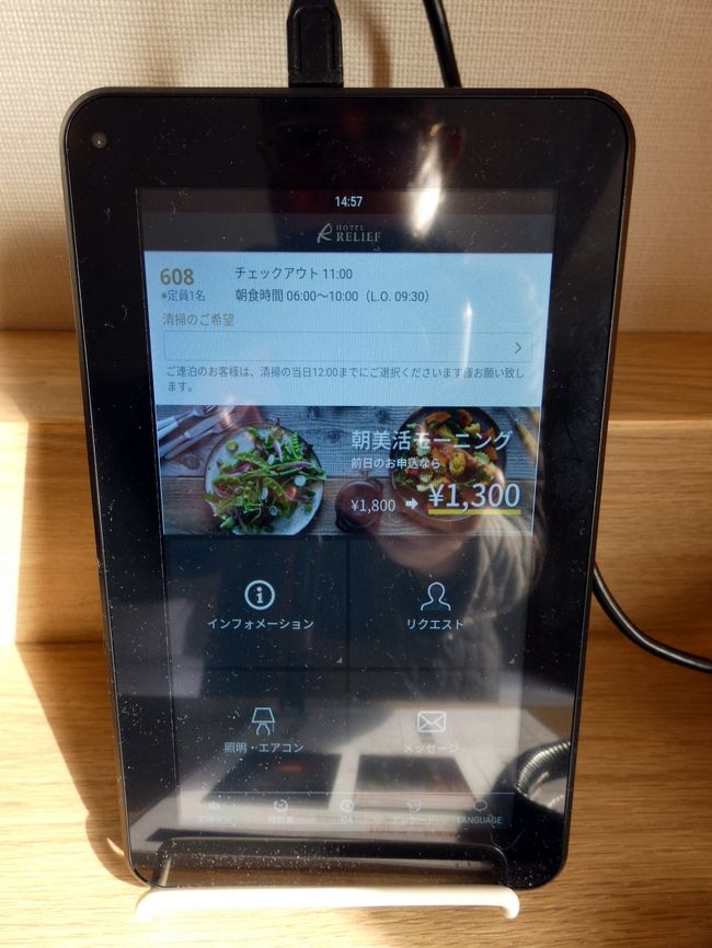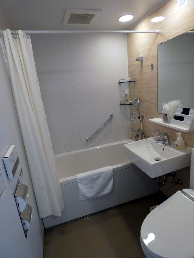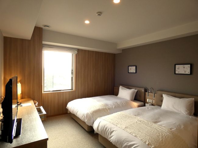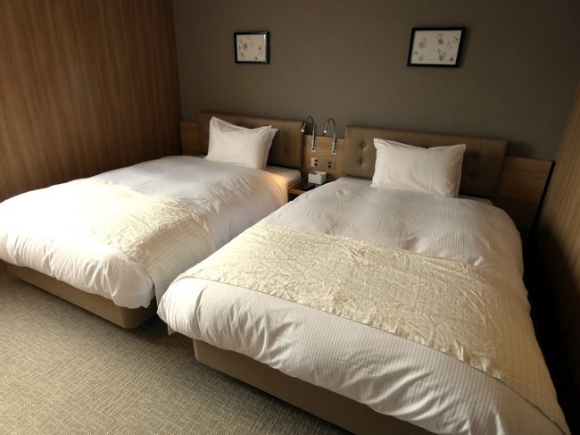 アサインされた6階のツインルームは、ビジネスホテルとしては十分広く、シモンズ社製120センチ幅のベッドが2台並んでも余裕があります。