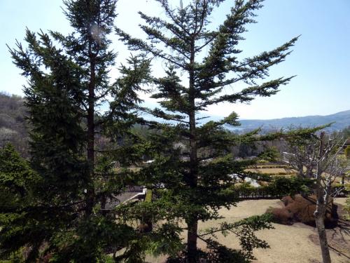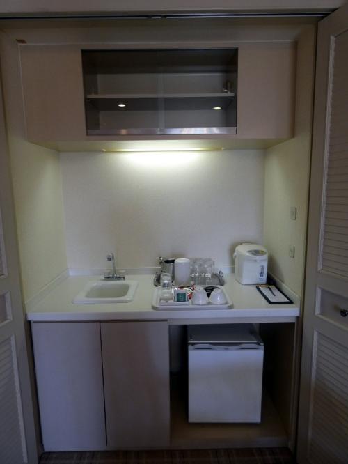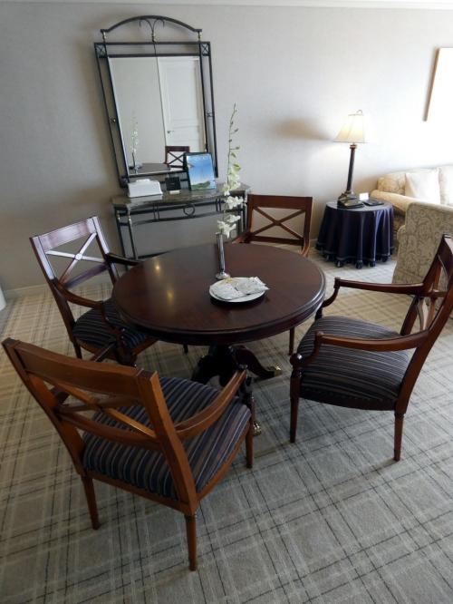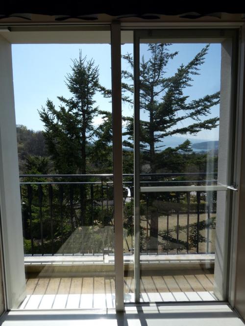 アサインされたのはリクエスト通りの1号館のバルコニー付きのお部屋でしたが、バルコニーの真ん前に大きな木が枝を広げていて、富士山がほとんど見えない残念なスイートルームでした。