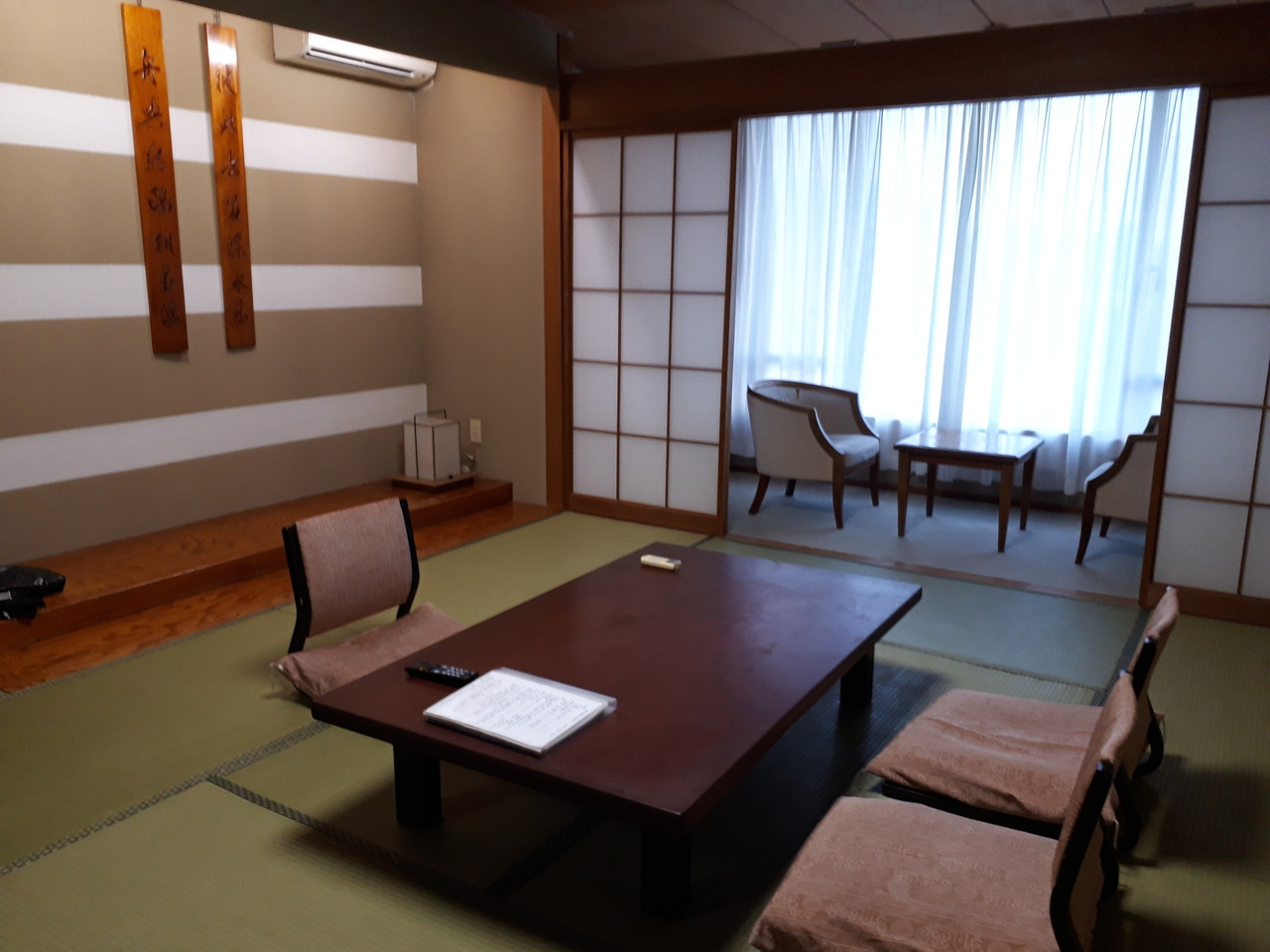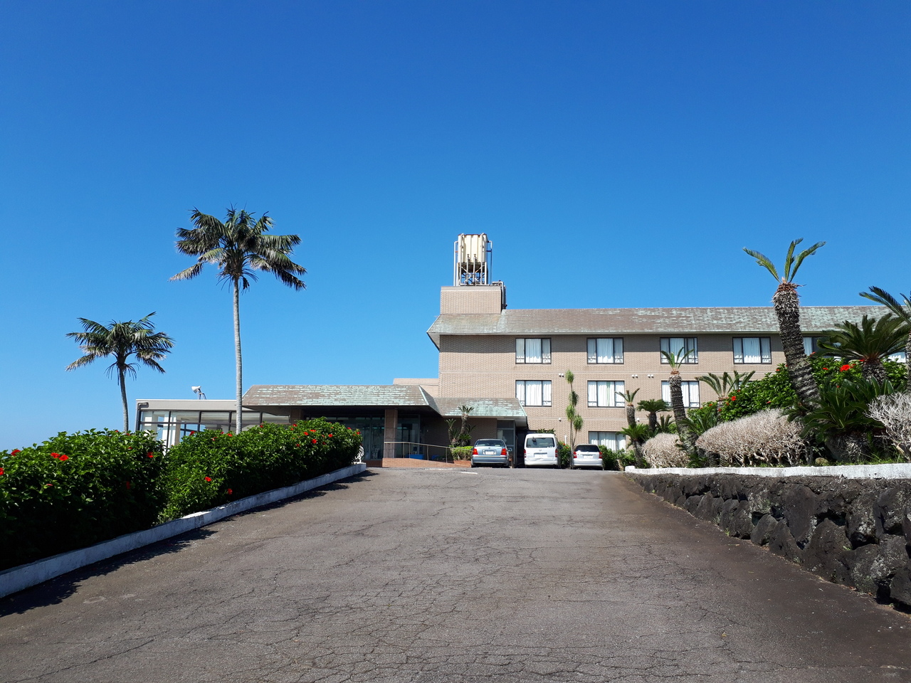 八丈島空港から5分弱のところ。見晴らしがよく気持ちがいい。部屋は和室で布団を敷く、浴衣もあり。プール(午前~17時まで)、温泉(17時~21または22時)あり。朝食はビュッフェ形式で、和洋でたくさん揃えている。子供用の食器等、細かく対応しているようす。