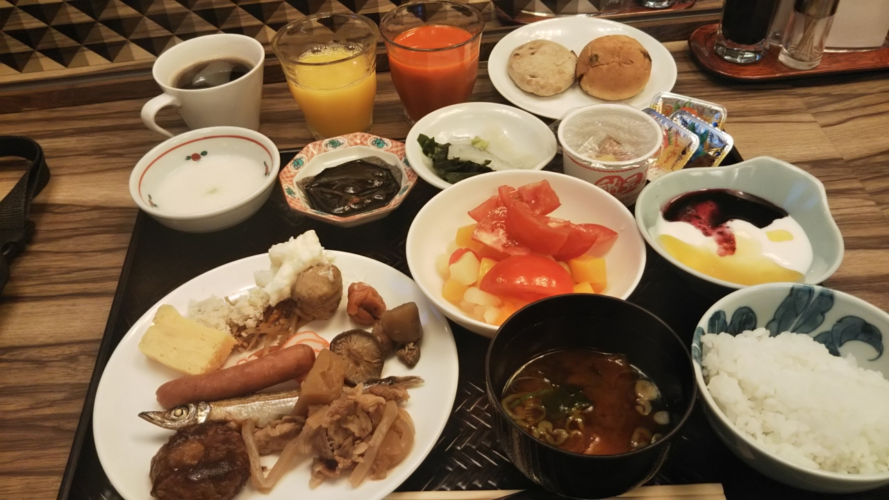 得によかったのが、朝食です。イカの刺し身や鯖寿司など、海鮮料理があり、とてもおいしかったです。