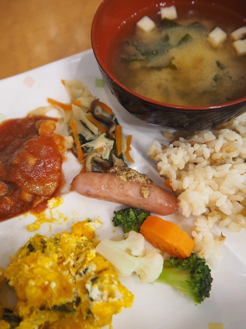 宿泊者に対し朝食が無料で提供される(6時半から9時)。時間によっては朝食室はかなり混むので、注意が必要。