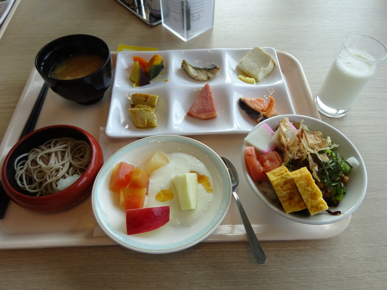 朝食のバイキングは「信州かってめし」が名物。ご飯の上に総菜を乗せて食べるもので、具材が多く選ぶ楽しみが。またレストランは最上階の16階に位置し、付近には高層の建物がないこともあり市内の街並みや周囲の山々など眺望が良いのが高ポイント。