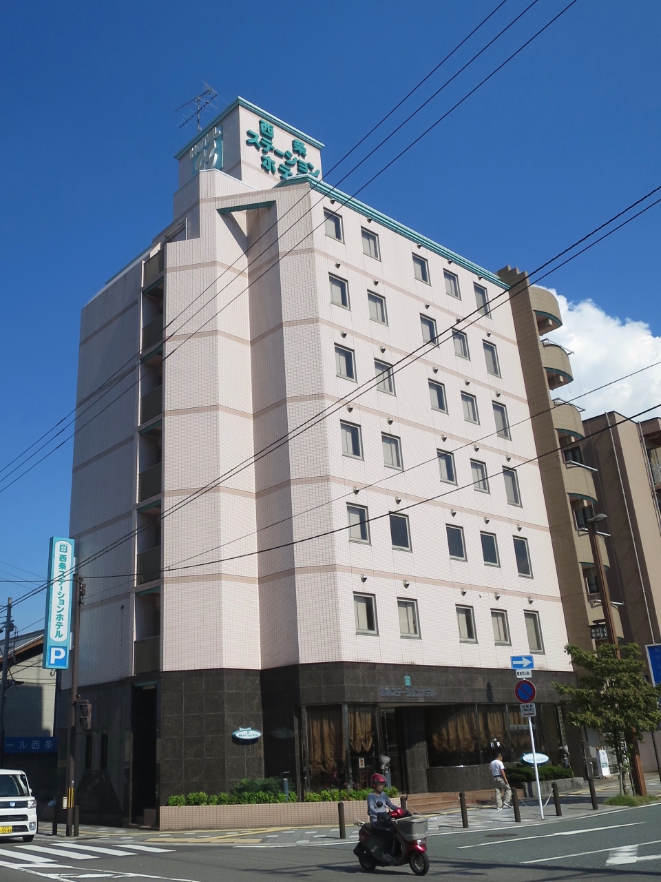 JR伊予西条駅を出て右手にあるホテル。駅前ロータリーに面しており、敷地内には無料の駐車場もあって、鉄道利用でも車利用でも対応するホテル。値段の比較的リーズナブルなので四国ツーリング中は宿泊費の高い松山を避けて、何度か西条を利用した際に重宝したホテルです。