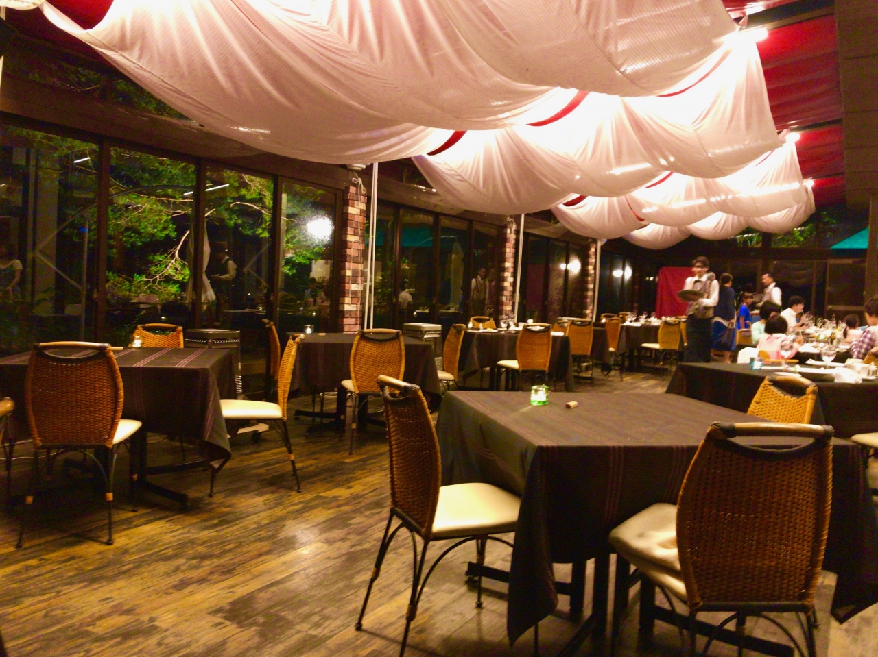 滞在した日はお天気が悪く、夜は気温が1桁台まで下がり、テラス席は夏だというのにストーブが焚かれました。