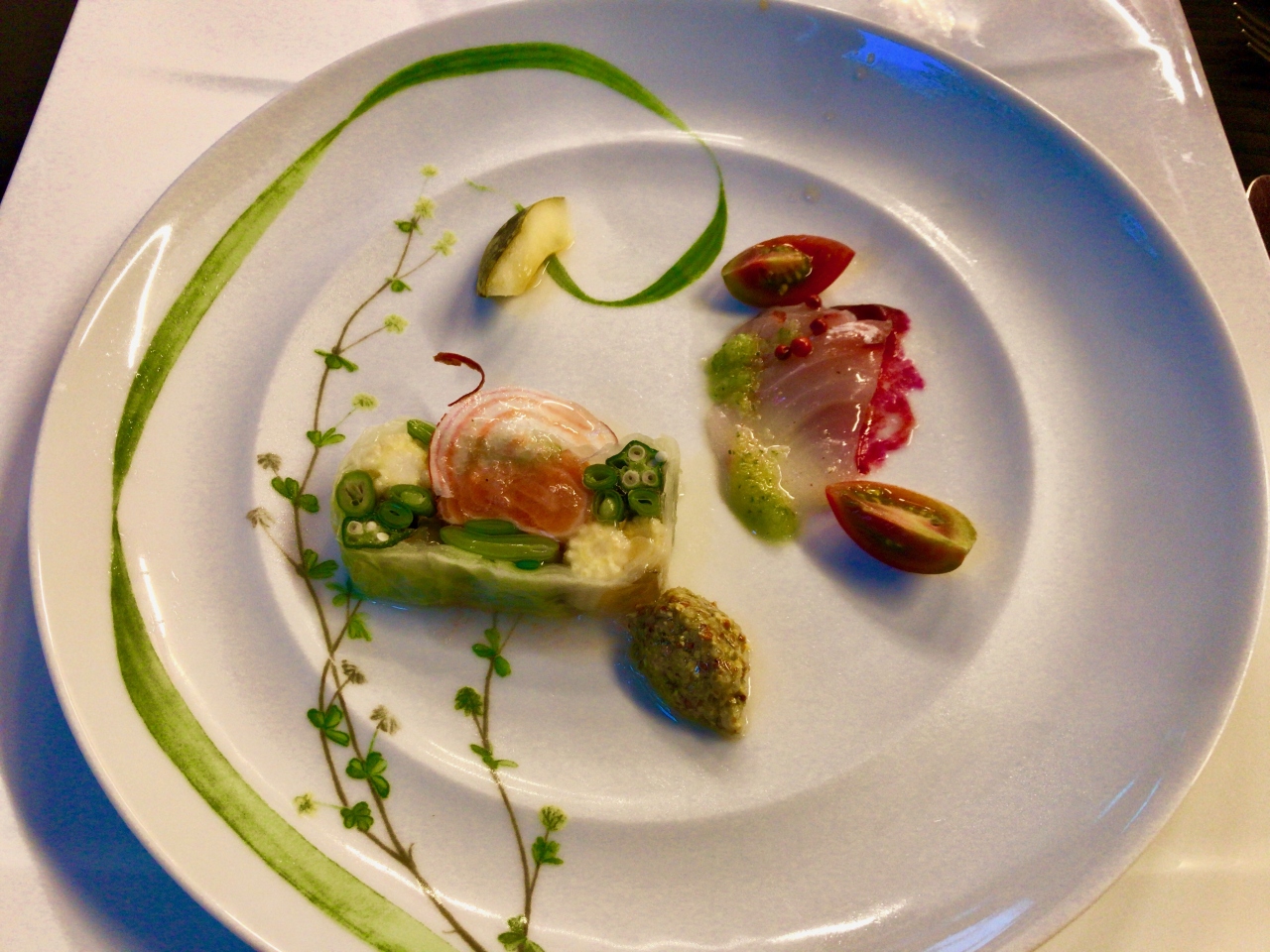 ディナーは「ル・プラトー」でフレンチを頂きました。女神湖を眺めながらテラス席で頂いたお料理は盛付けが素晴らしく、美味しかったです。