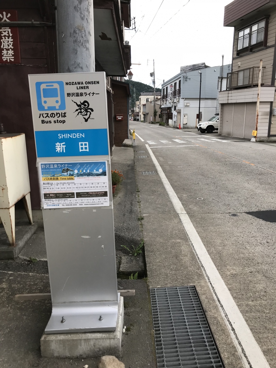 野沢温泉の中心部より外れ、野沢温泉バス停の一つ手前のバス停・新田バス停そばのバス通り沿いにある2階建の小さなお宿。