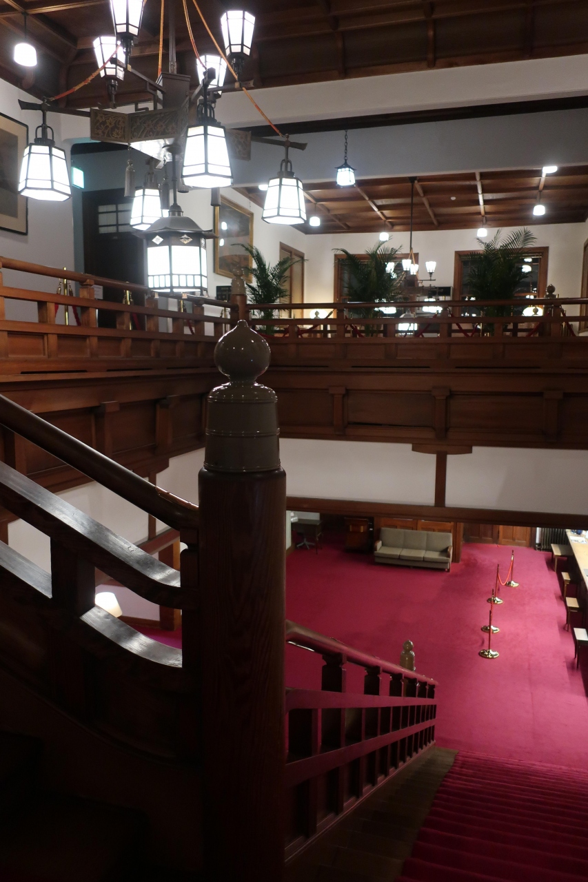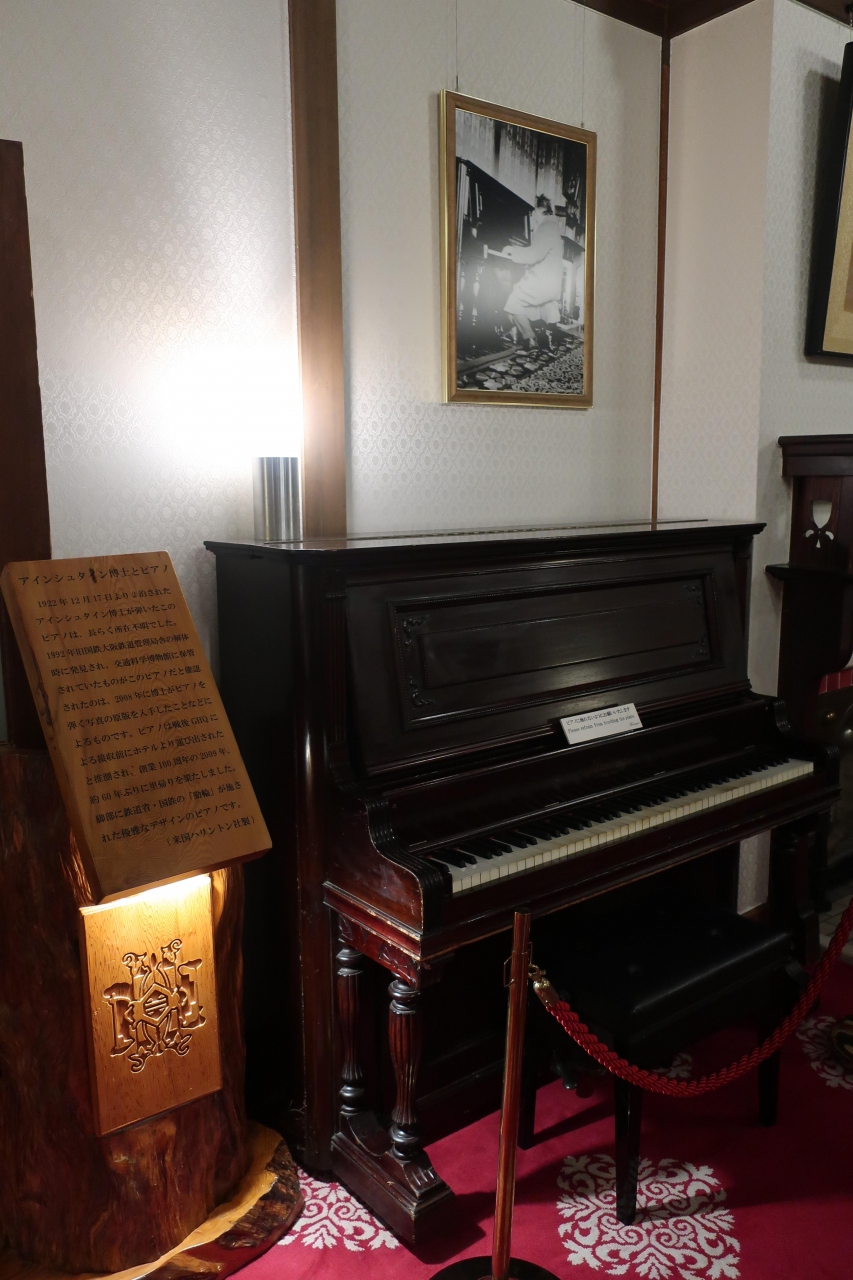 木造瓦葺2階建ての本館は創業以来の建築物で内外ともに重厚な造りや、館内に掛けられた美術品が目を引きます。ラウンジにはアインシュタインが演奏したピアノなど歴史ある品々が数多くあります。