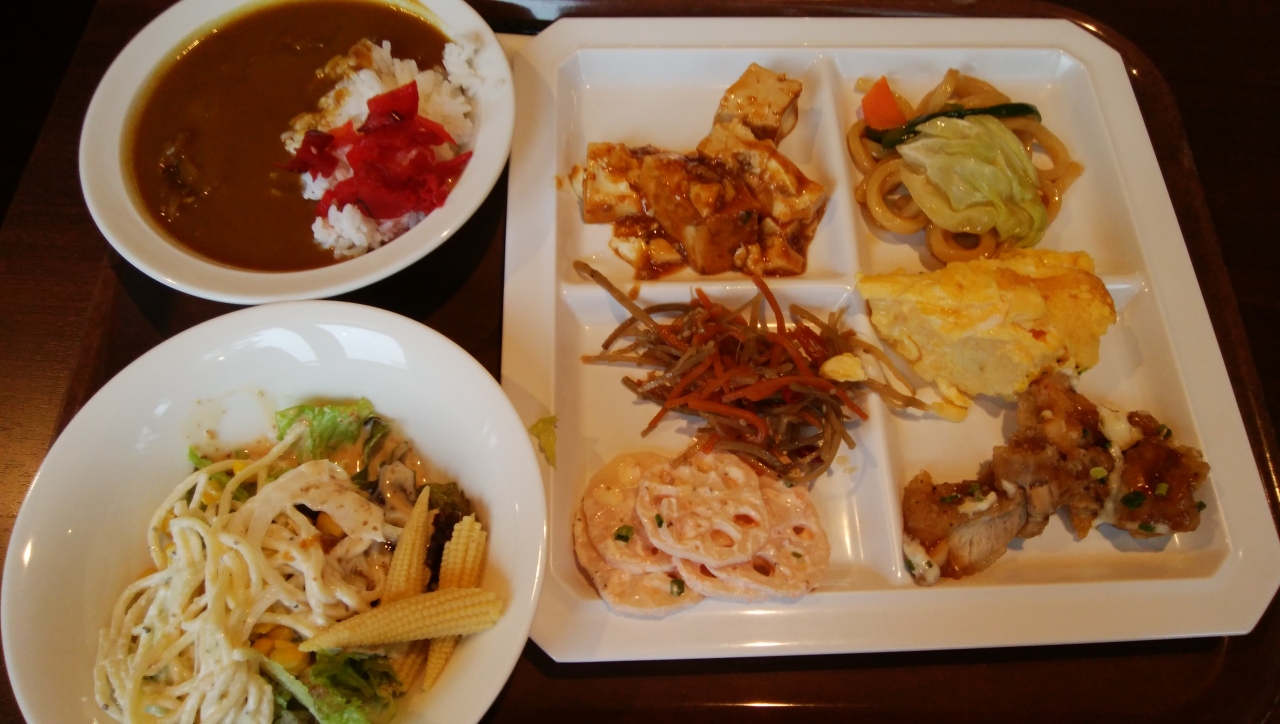 ・食事は惣菜の数は多めで、朝カレーもあり。