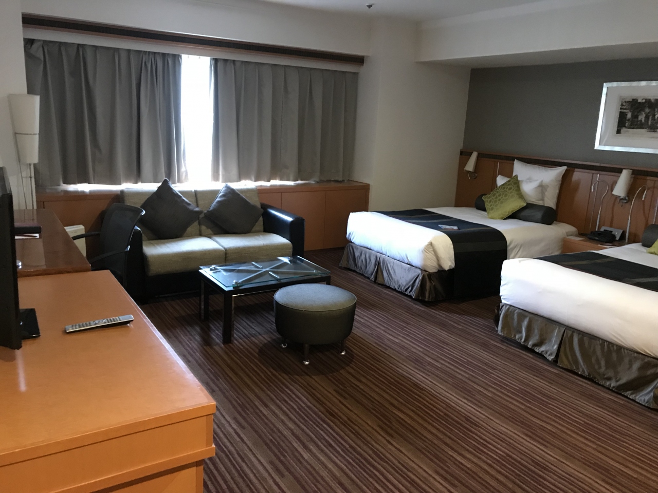 客室はアップグレードで、コーナークラブデラックスツインルームになりました。広さは充分で快適に過ごせました。バスルームに古さを感じましたが、全体的には気になるほどではありませんでした。