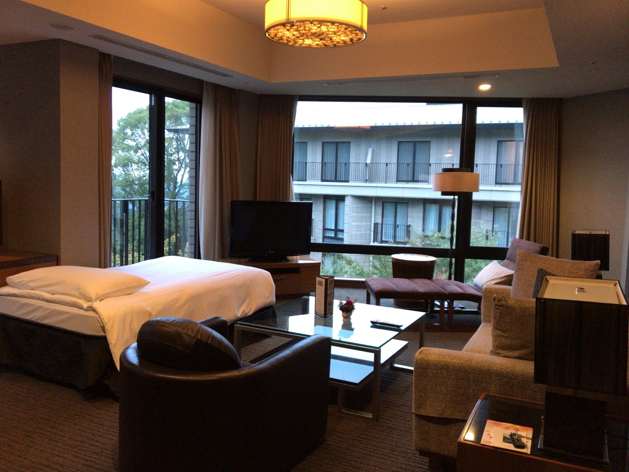 箱根・宮ノ下の国道1号線沿いにある「リゾートトラスト」が展開する会員制リゾートホテルで、主人の会社が法人契約を結んでいるので、「ラージグレード」の1bed洋ルーム(EC5タイプ/室料18,036円)に友人と3人で宿泊しました。