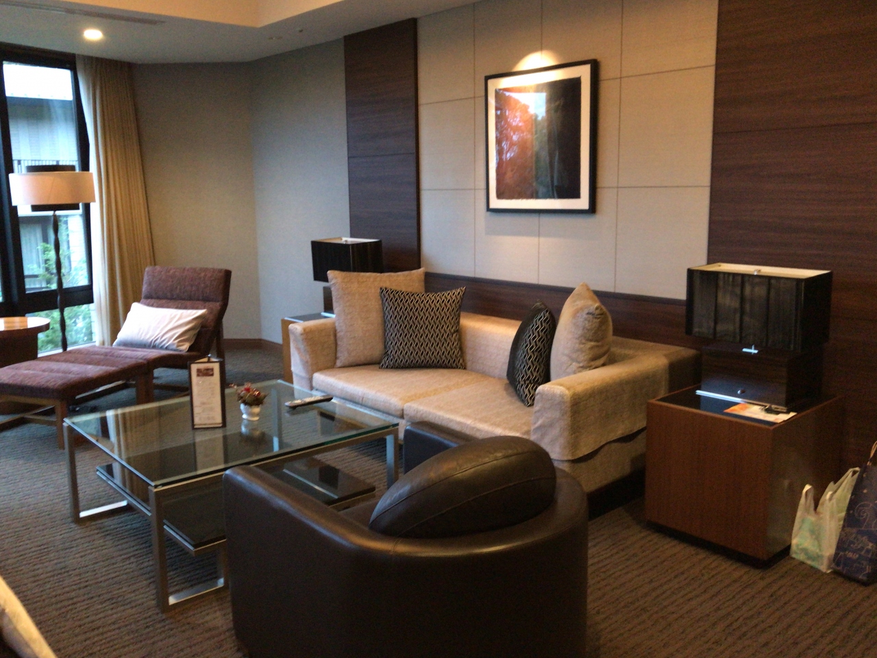 定員が2人で70.87㎡のゴージャスなお部屋にはソファと安楽椅子、ベッドが2台配置され、エキストラベッド(無料)を入れてもらいましたが、3人でも余裕の広さでした!