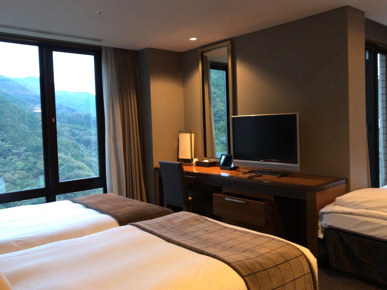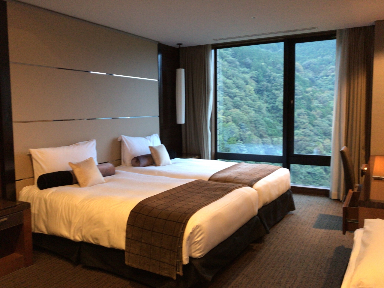アサインされたお部屋は2号棟の2508号室で、フロアの一番山側の角部屋で、3面の窓から見える早川渓谷の眺めが素晴らしかったです!