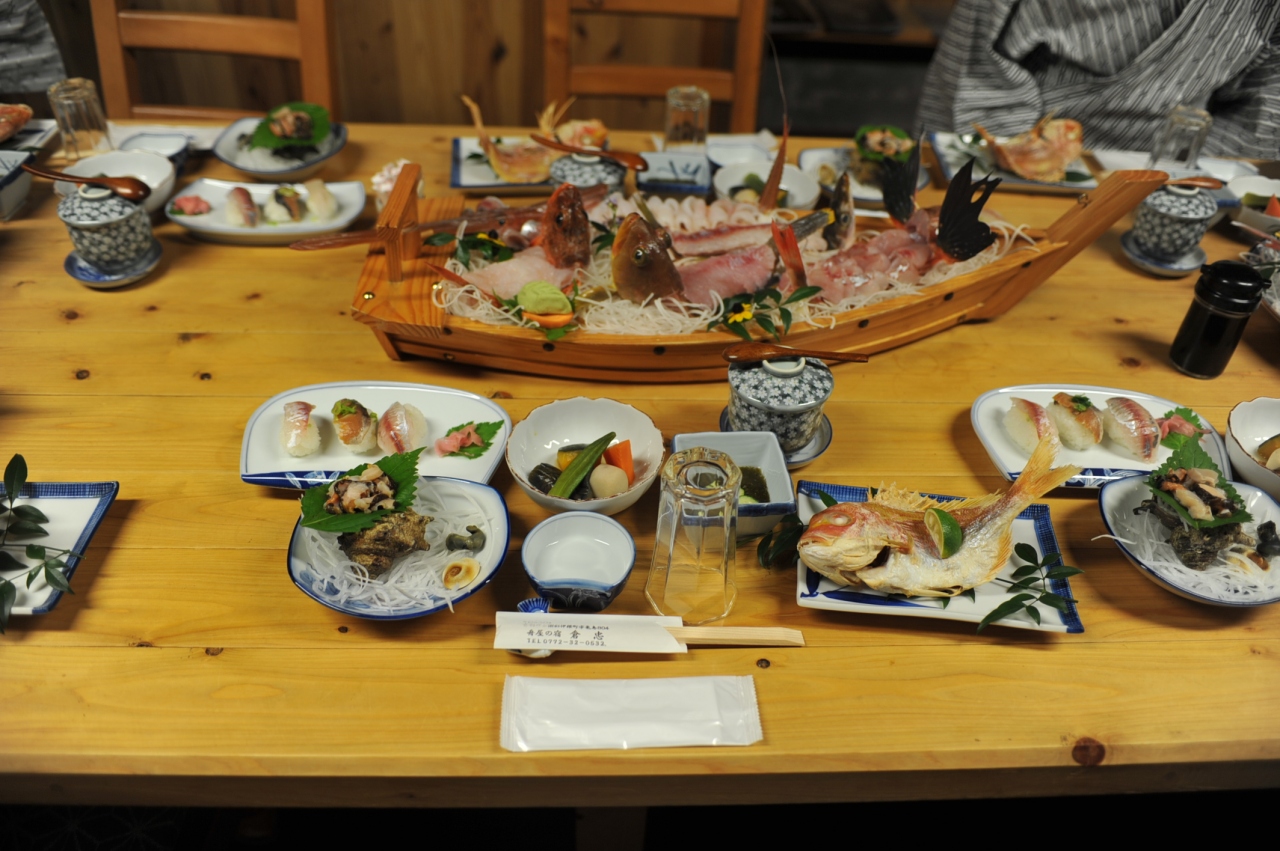 3月に予約の電話をしたら、早すぎるので6月になったら電話してと言われ、6月から予約して、行くのを楽しみにしていました。トイレやお風呂はリフォームされて、とてもキレイですし、お部屋も3部屋あって、10人で泊まるにはちょうど良いお宿でした。夕食は刺身の舟盛り、焼き魚、煮魚とふんだんにお魚を食べられ、お酒も地元向井酒造のお酒が用意されているので、ゆっくり落ち着いて料理を堪能できます。朝食もお魚を忠にした料理で、お腹一杯になります。また、舟屋なので、遊覧船はお宿まで迎えに来てくれて、そのまま乗船することができるので、とても便利です。