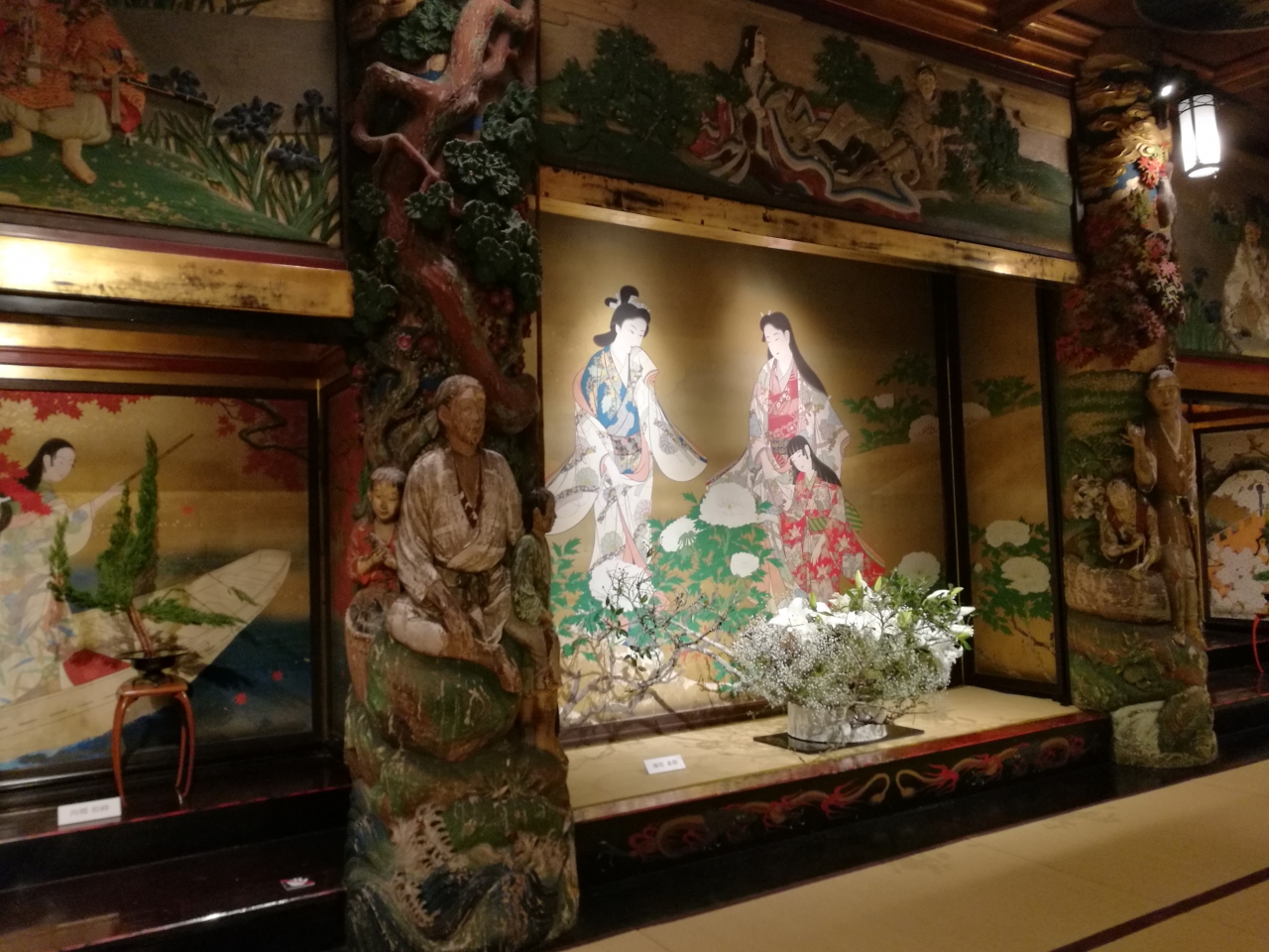 百段の階段でつながれた部屋には日本画の大家である鏑木清方をはじめとする著名な芸術家たちがつくりあげた壁や天井に施されたきらびやかな彫刻や工芸、天井画などが見事で昭和の竜宮城とも呼ばれている建物は必見。