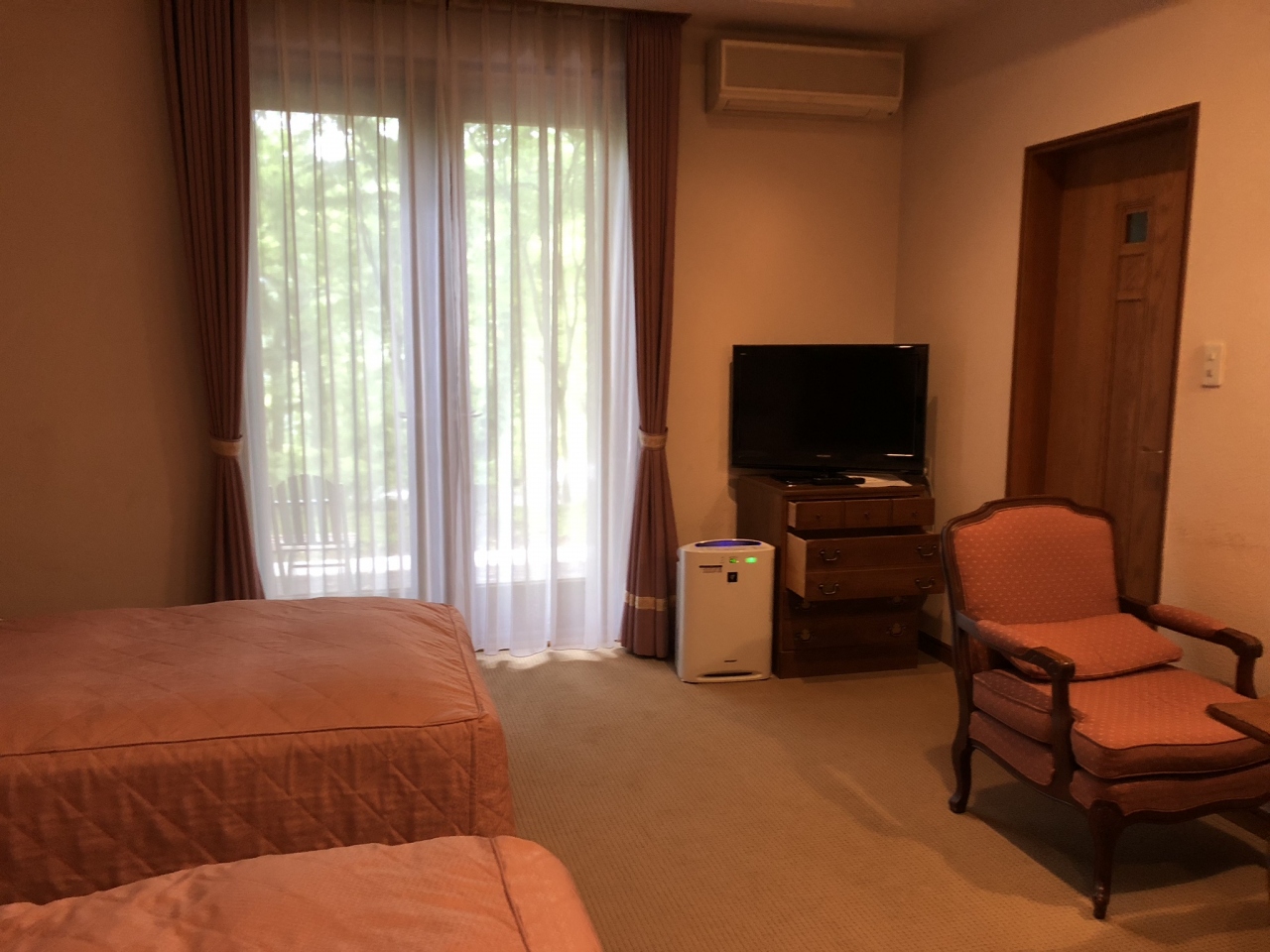 部屋の窓からは中禅寺湖が木の間から望めます。
