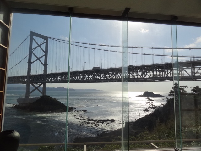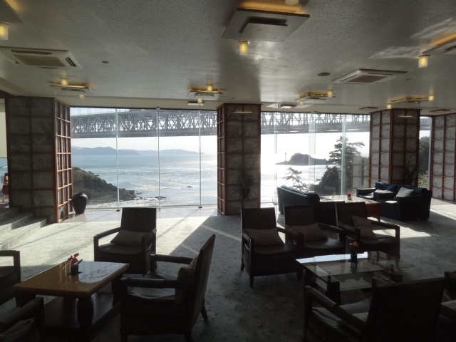 ベイリゾートホテル海月鳴門は、JR鳴門駅からバスで45分くらいのところにあります。バス停の鳴門公園からは歩いて五分くらいでしょうか。非常に眺めの良いホテルて、山側の部屋に泊まりましたが、特にホテルのすぐそばに大鳴門橋を見れる展望台がたくさんあるので大満足でした。