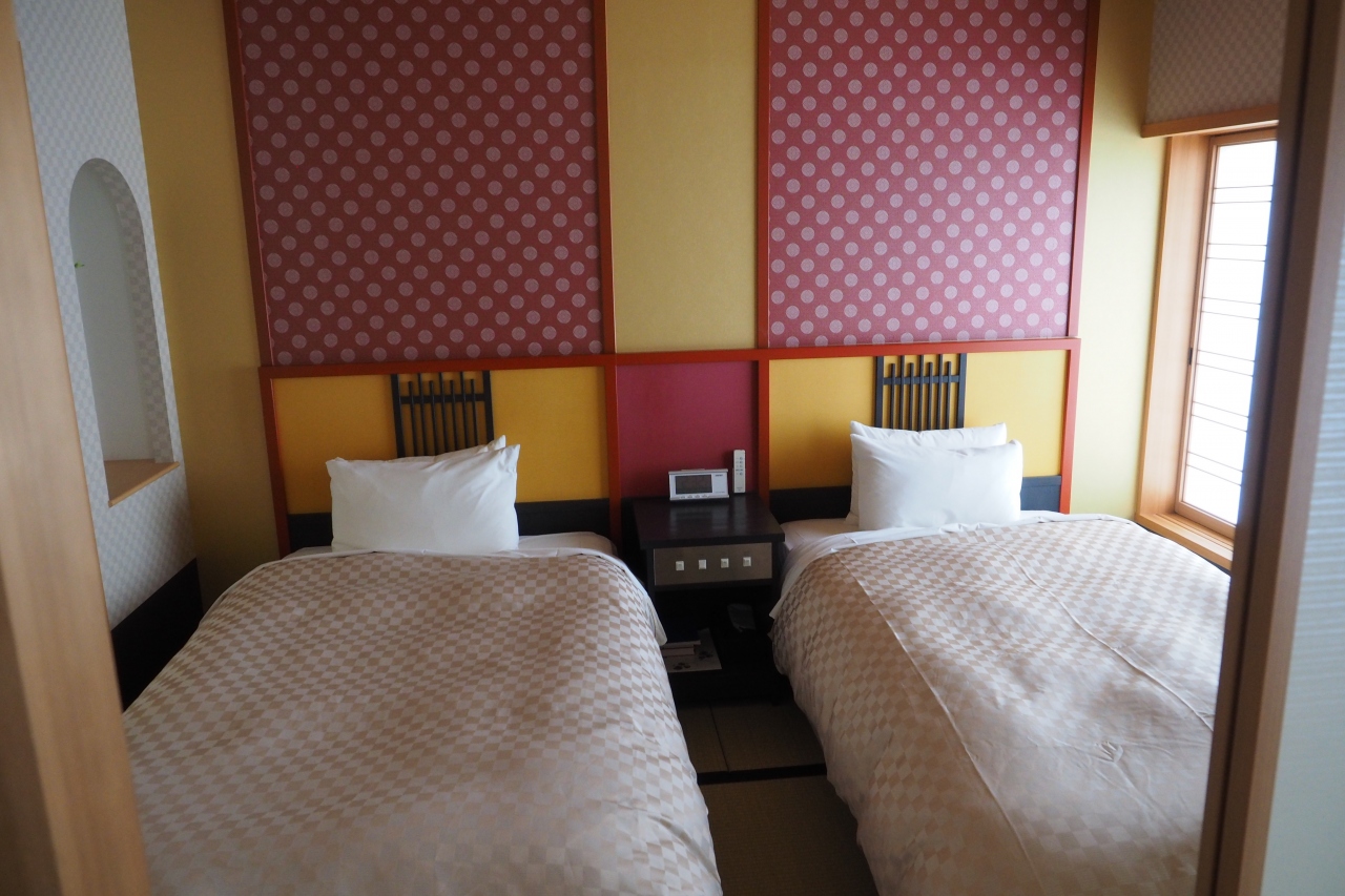 バスツアーで利用しました。2間続きの部屋でとても広々としていて、ゆったりと過ごせました。また、内装がとても素敵で、清潔感もありました。