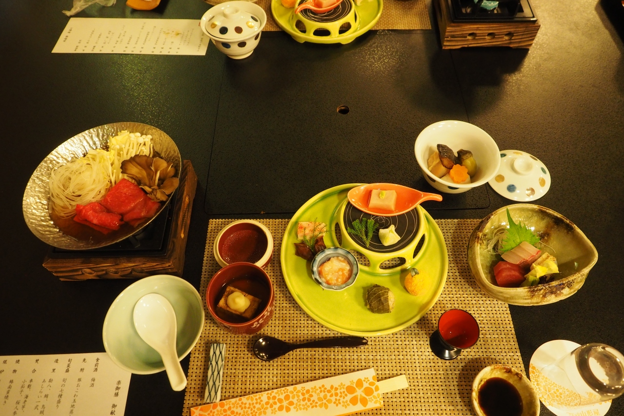 夕食はプランに含まれていた会席膳を大広間でいただきました。とても手の込んだ料理で素晴らしかったです。地酒も各種揃っていました。